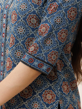Ajrakh Samah Set Of Kurta With Pockets Pants Dupatta