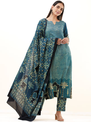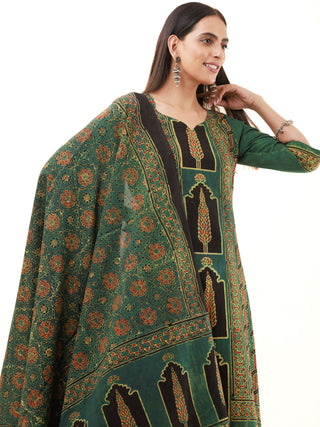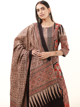 Ajrakh Shamiyana Set Of Kurta Pants Dupatta