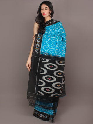 Azure Blue Black White Grey Ikat Handwoven Pochampally Mercerized Cotton Saree - S031701253