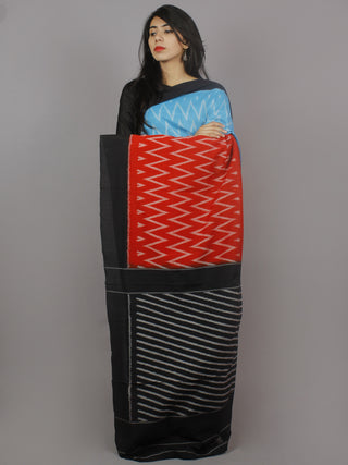 Azure Black Red Yellow Ikat Handwoven Pochampally Cotton Saree - S031701061