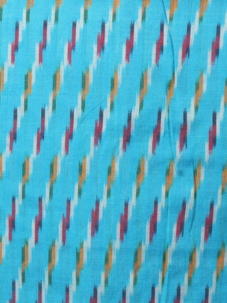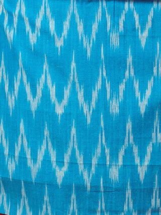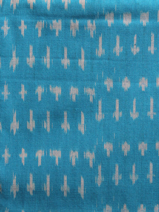 Azure Blue Ivory Pochampally Hand Woven Ikat Cotton Fabric Per Meter - F002F1462