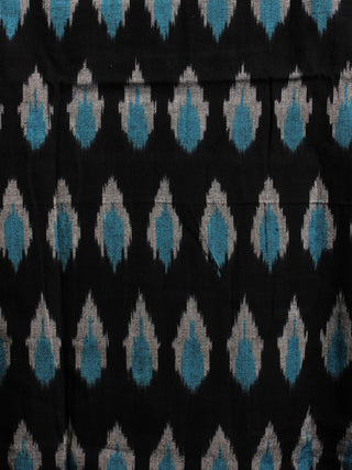 Azure Blue Black Grey Ikat Handwoven Pochampally Mercerized Cotton Saree - S031701248