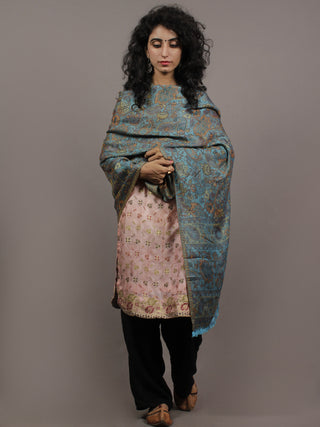 Azure Blue Golden Yellow Rust Cashmere Jamawar Silk Woolen Stole - S6317206