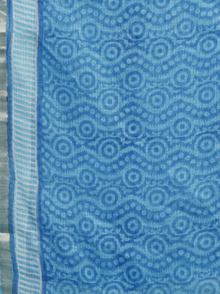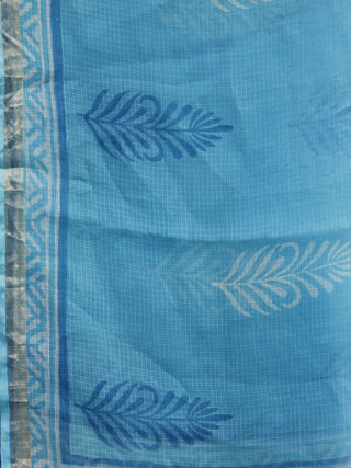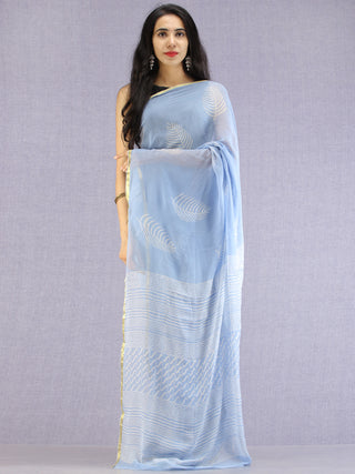 Baby Blue OffWhite Hand Block Printed Chiffon Saree with Zari Border - S031704604