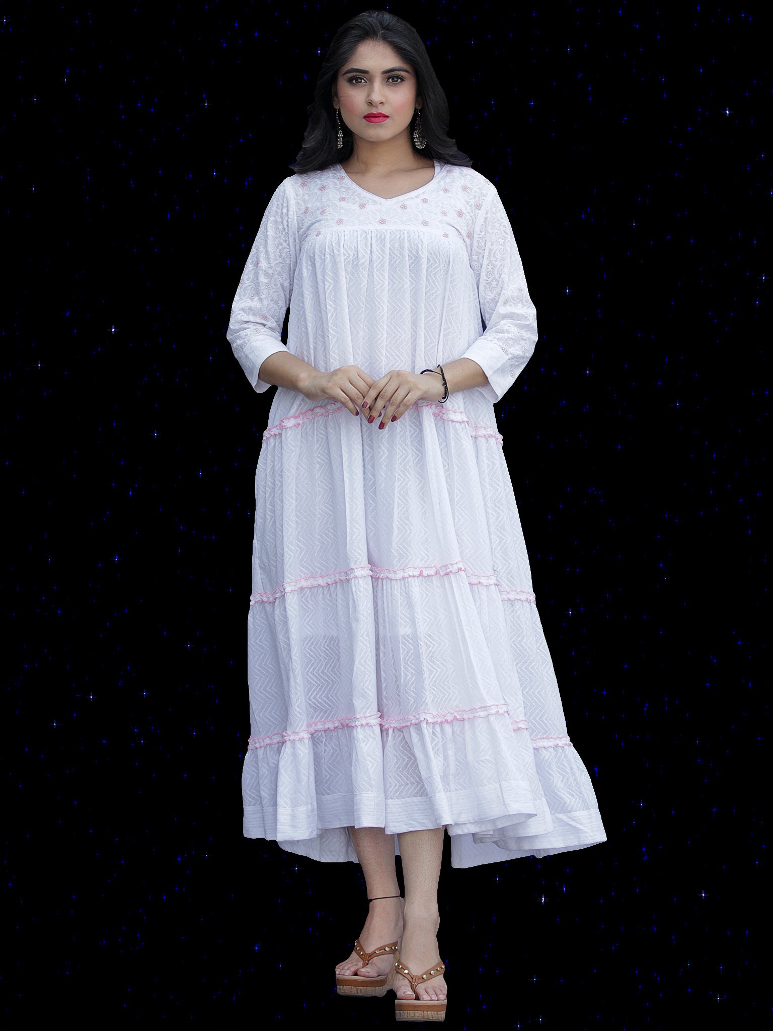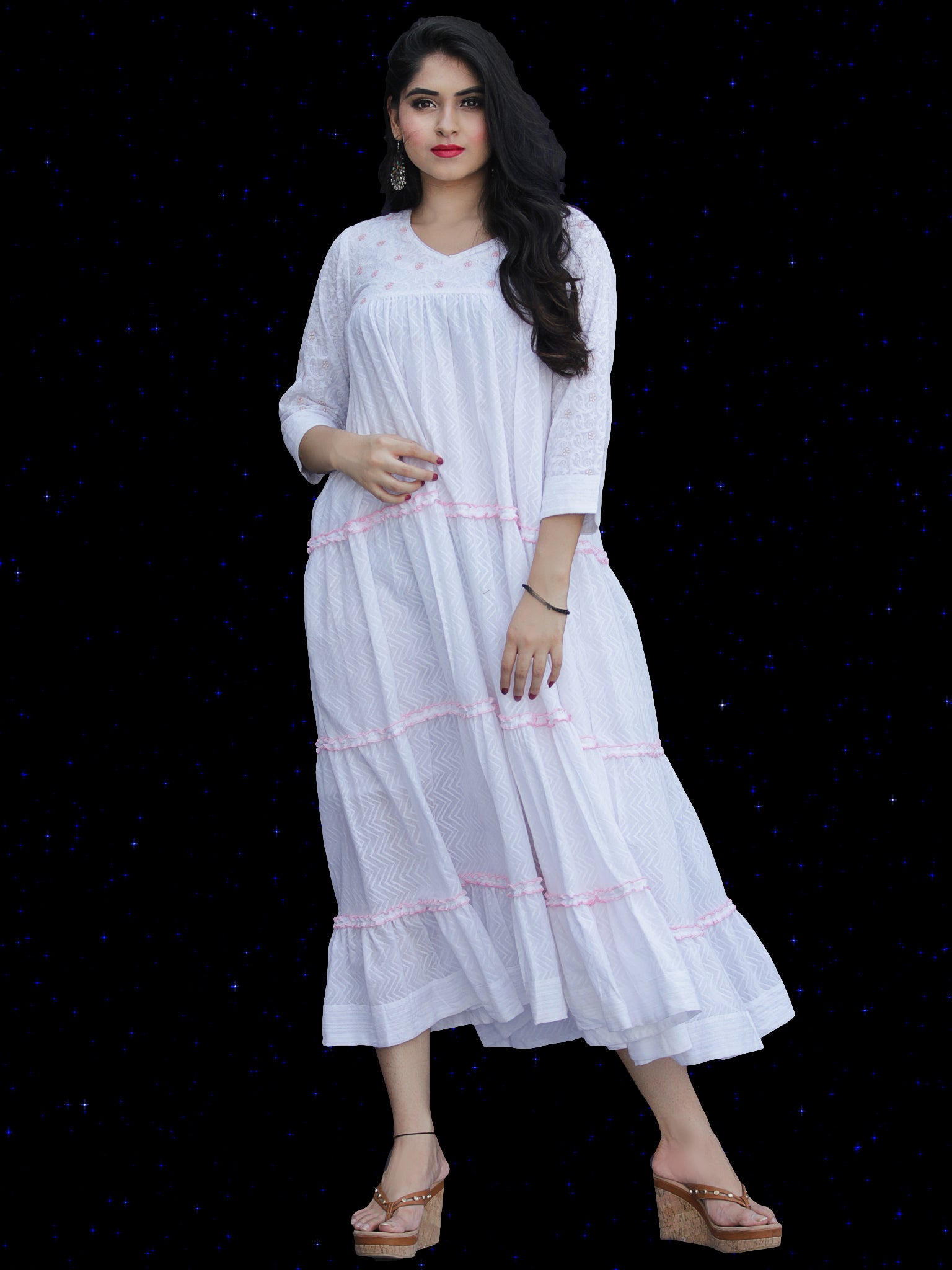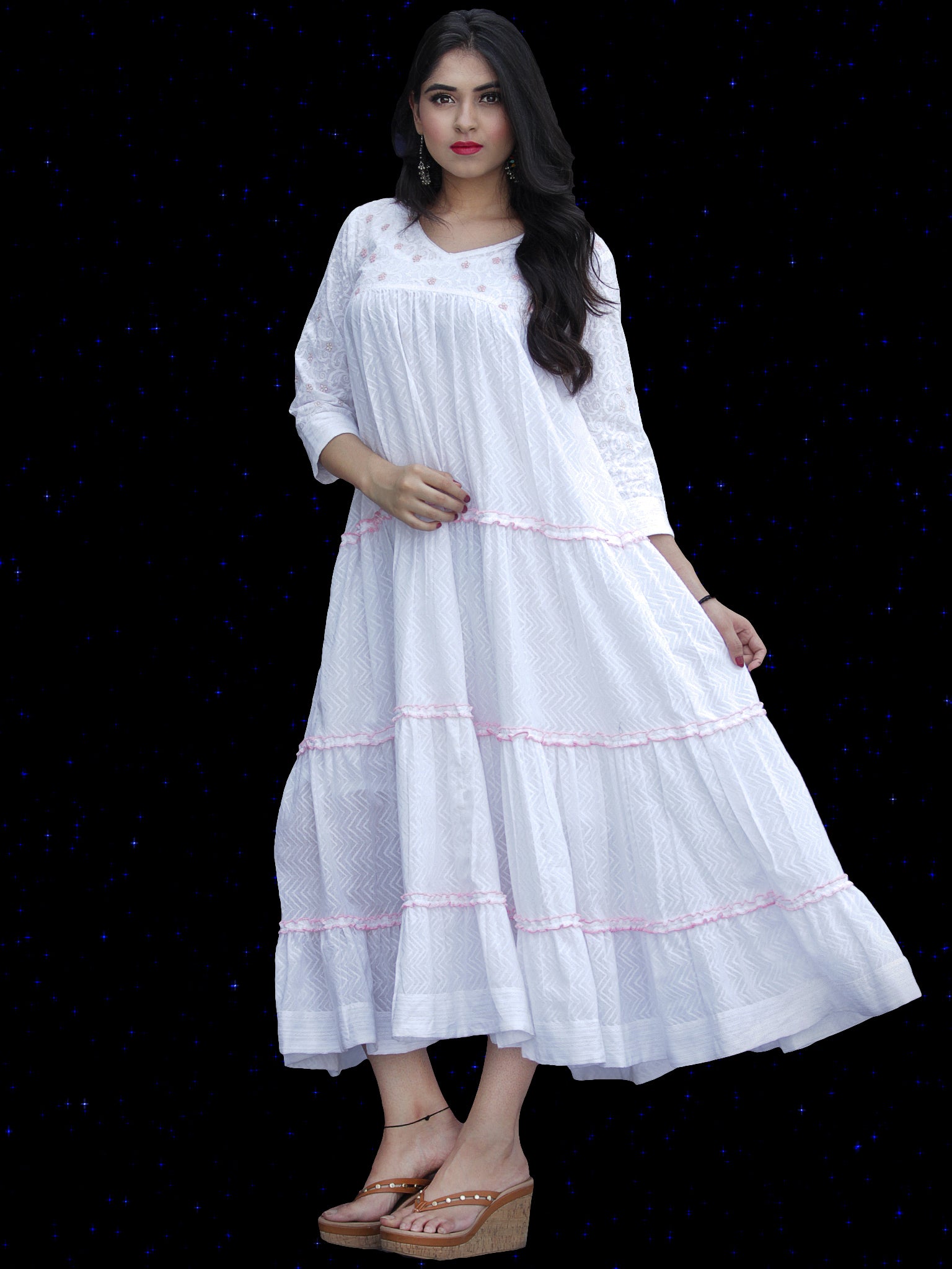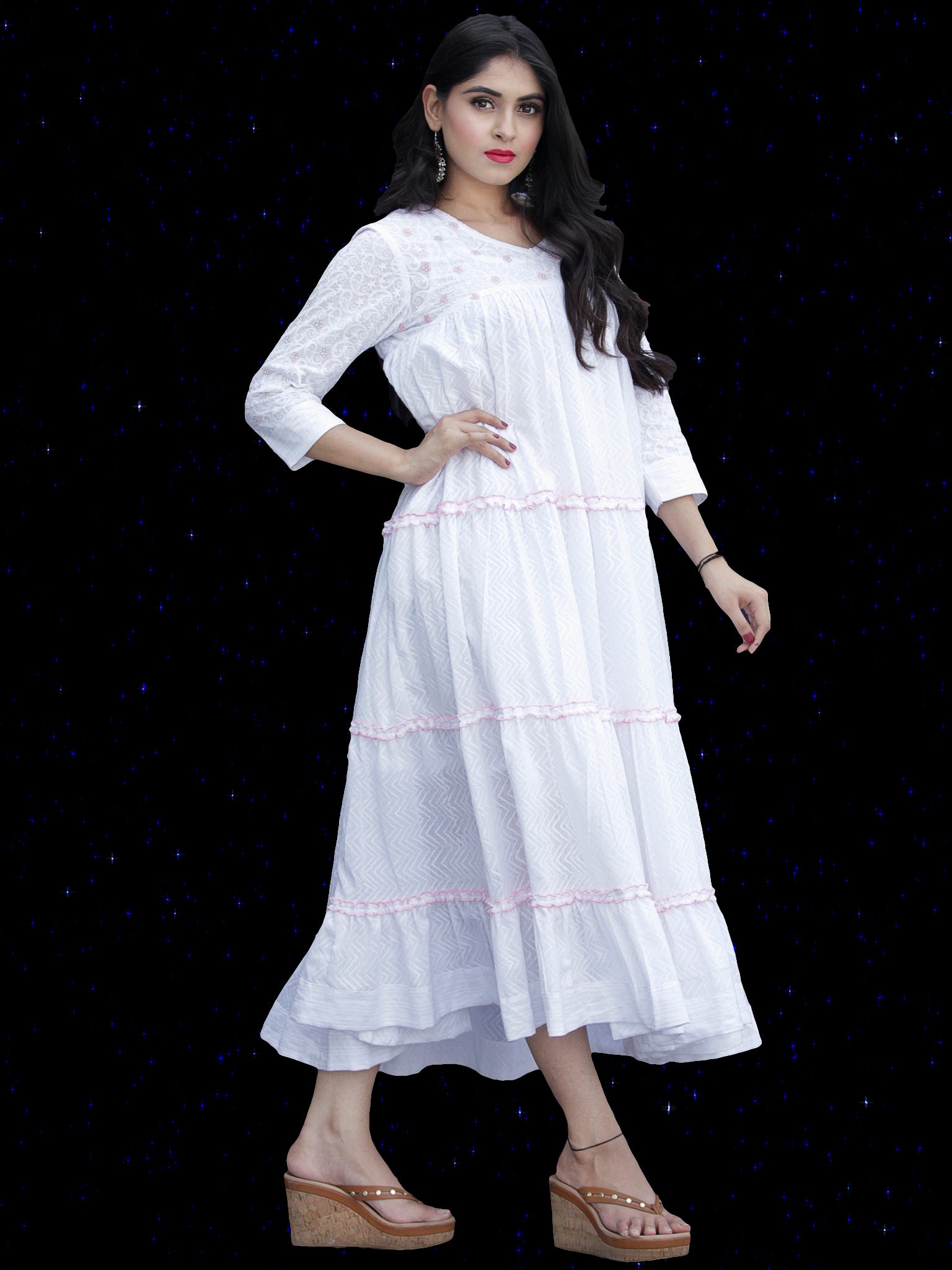 Chandni Sumnah - Cotton Dobby Tiered Long Dress With Embroidery - D445FP01