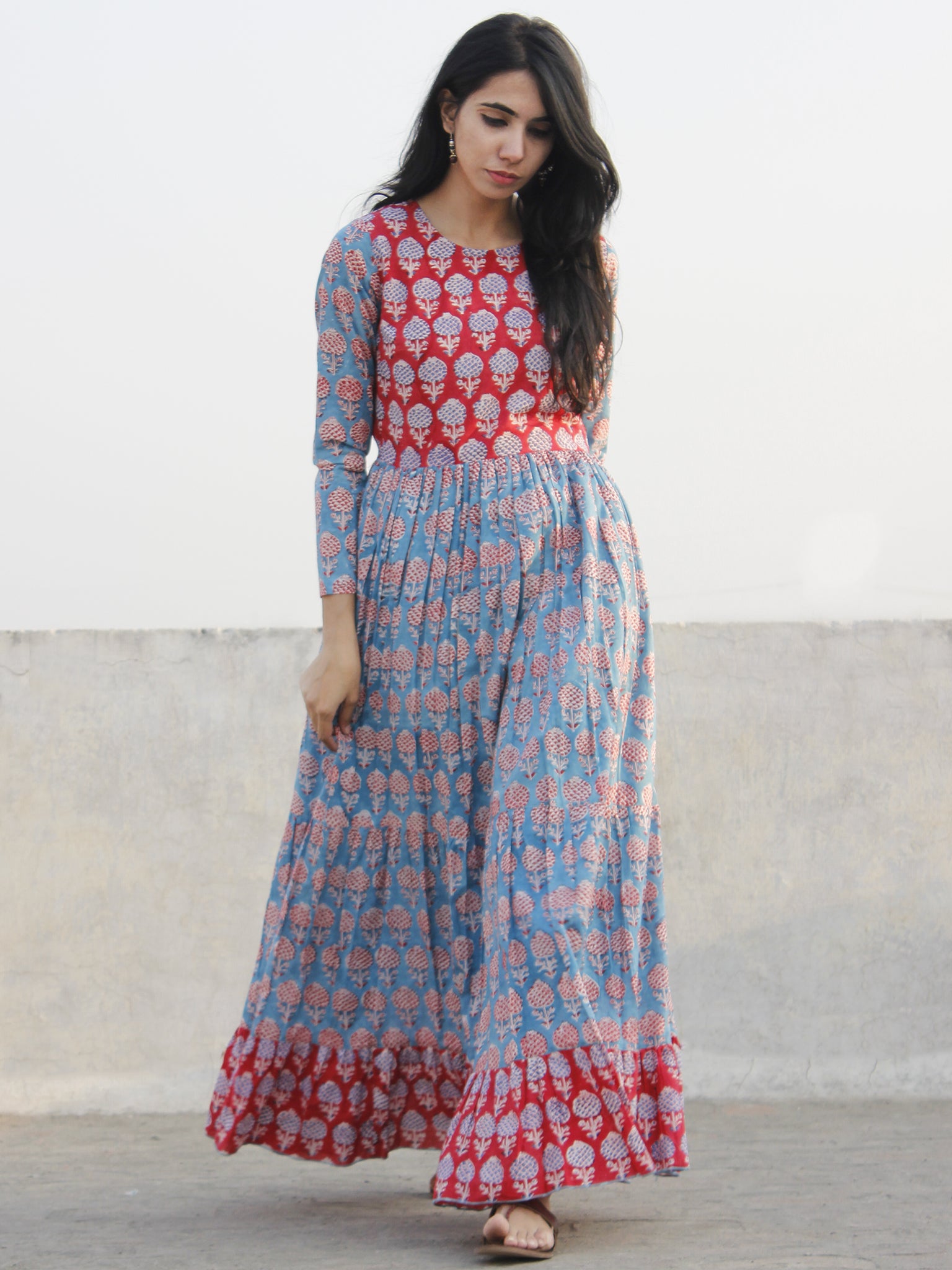 PRODUCT: The fabric of this dress is 100% pure cotton, Hand Block printed in Natural Colors by Artisans in Rajasthan.