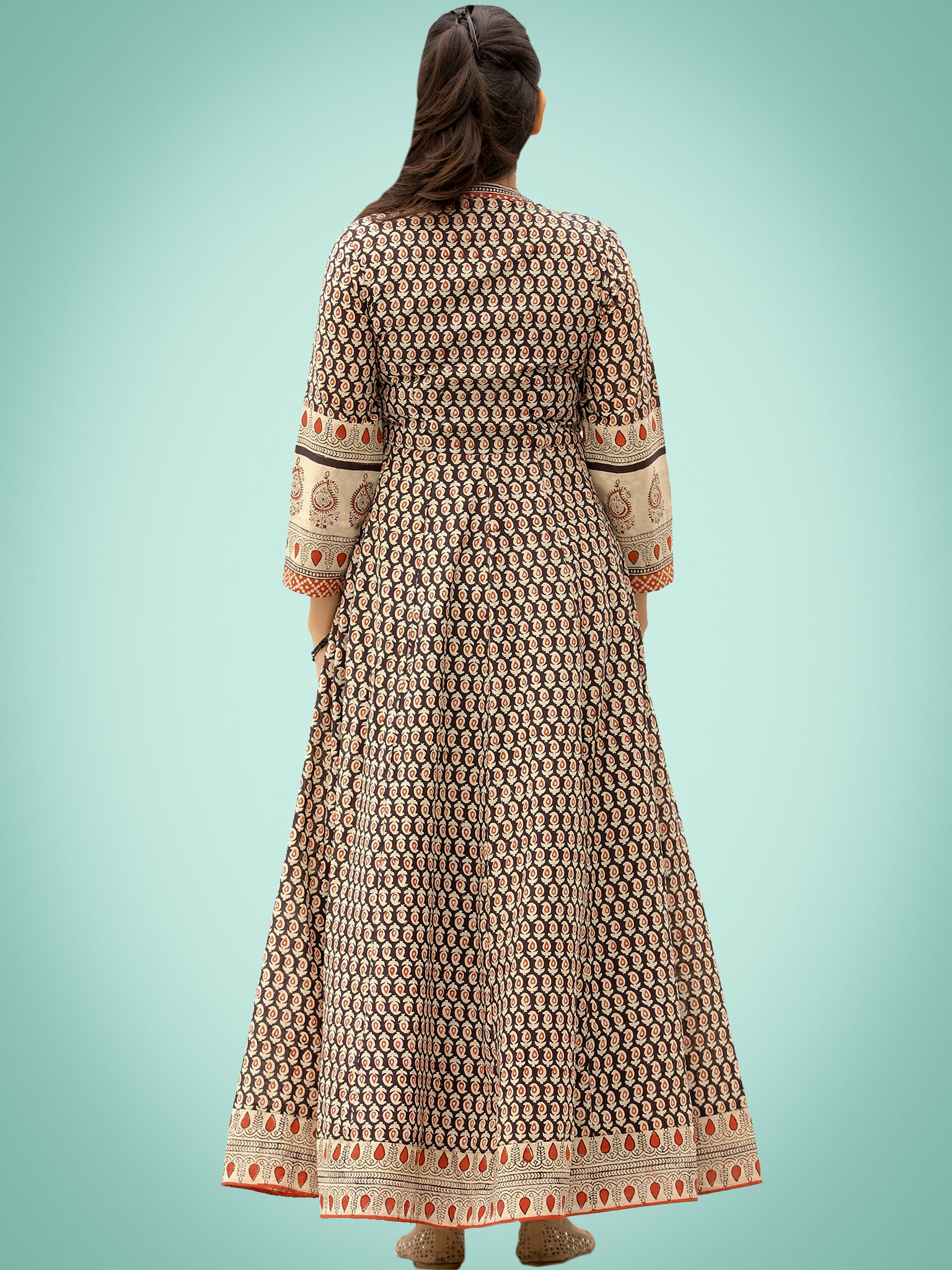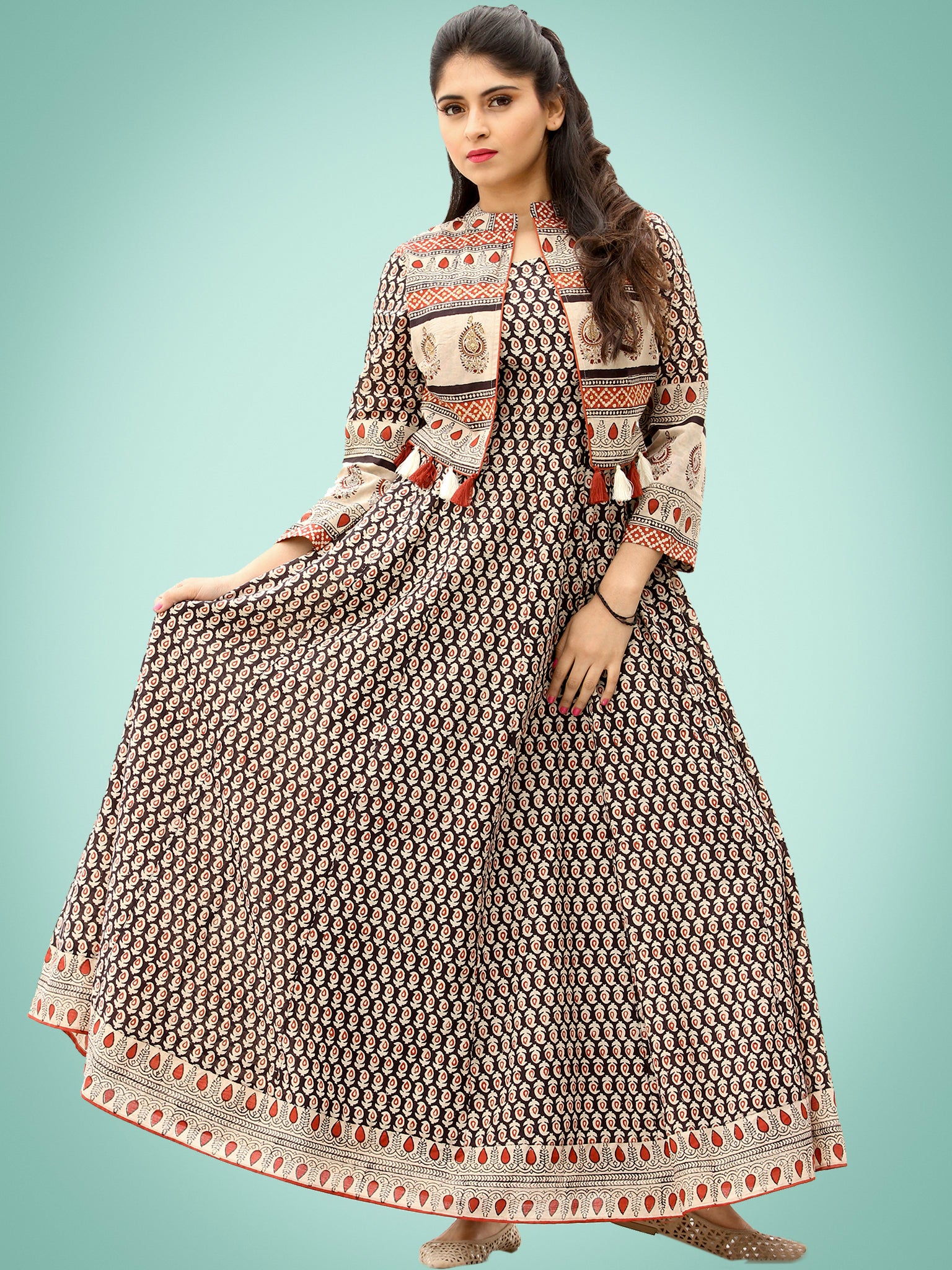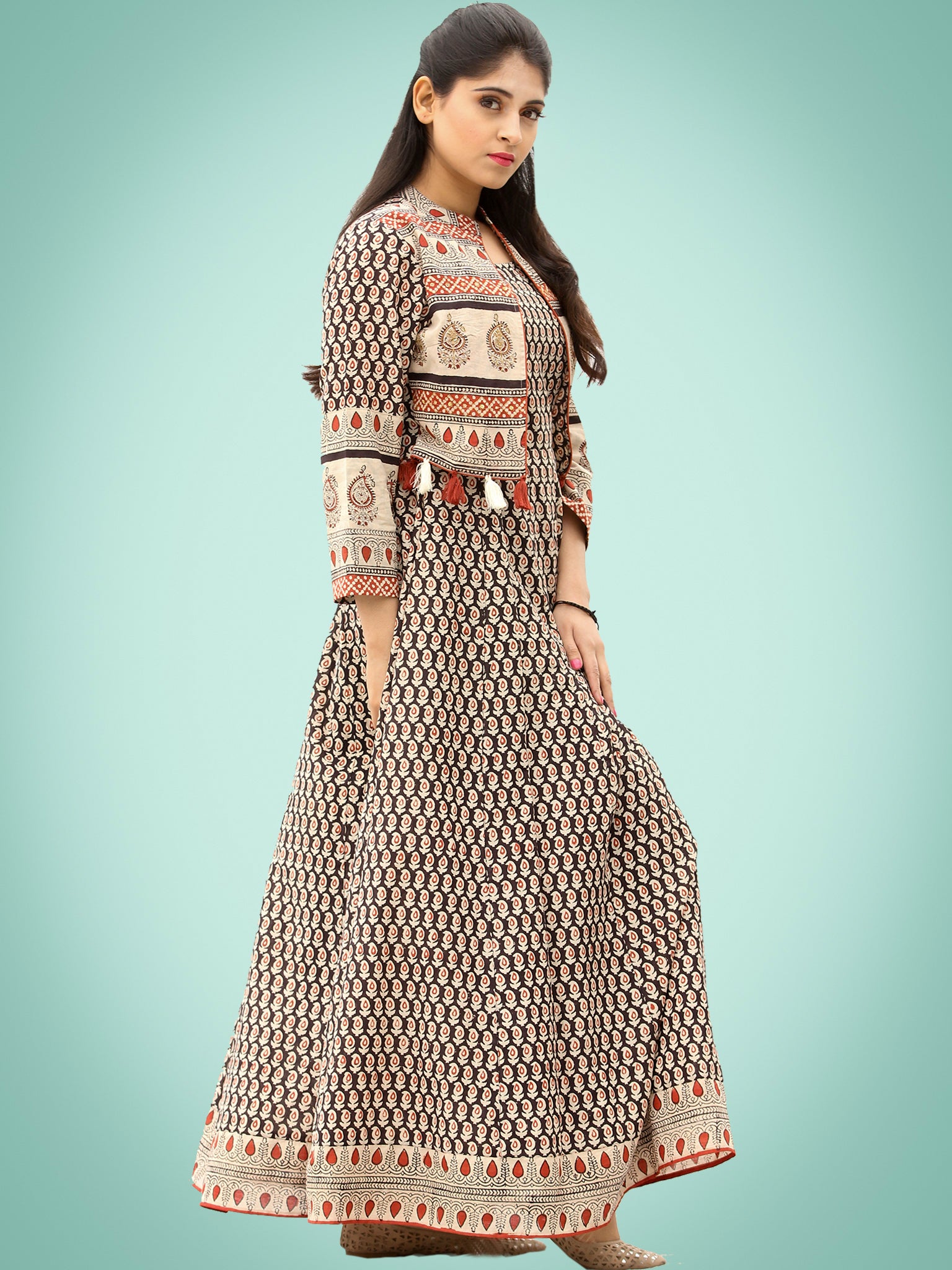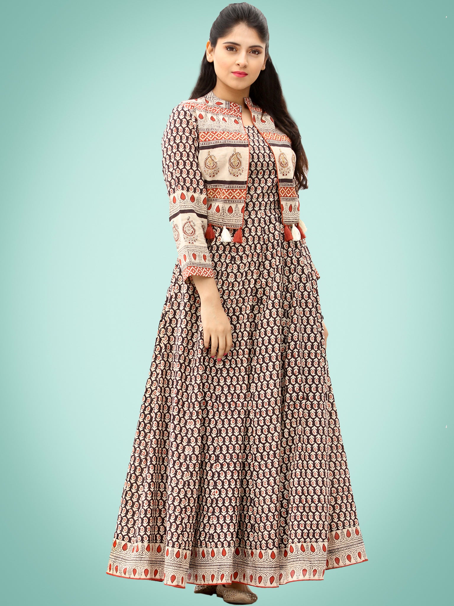 PRODUCT: Fabric is 100% pure cotton. Hand Block printed by Artisans in Rajasthan. It has embroidery on yoke and lining attached.