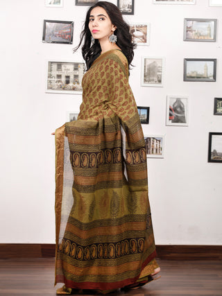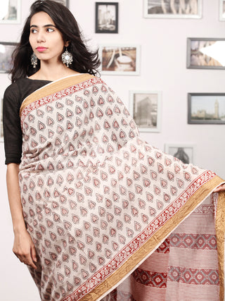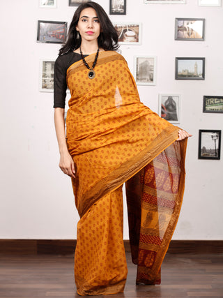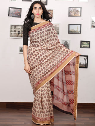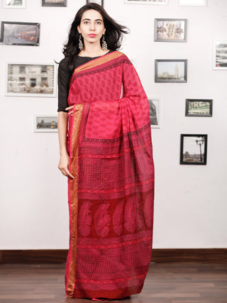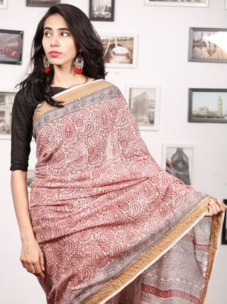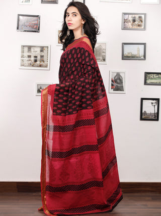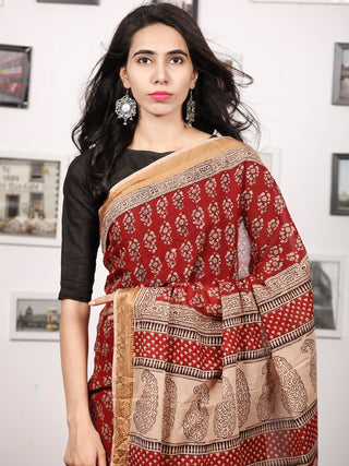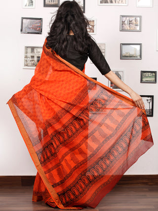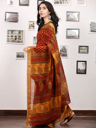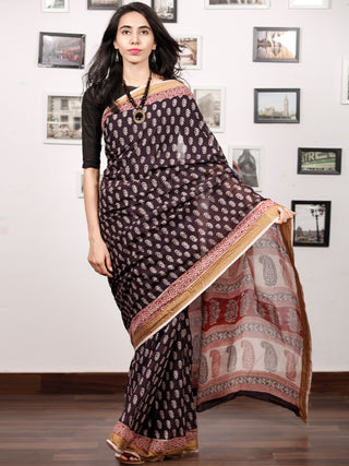 Maroon Rust Orange Black Bagh Printed Maheshwari Cotton Saree - S031703319