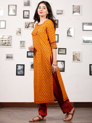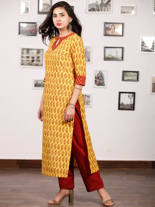 Yellow Maroon Black Bagh Hand Block Printed Kurta in Natural Colors - K123F1718