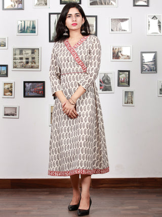 White Red Black Bagh Printed Cotton Midi Length Angrakha Dress - D299F1702