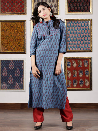 Blue Maroon Black Bagh Printed Kurta in Natural Colors - K105F1693