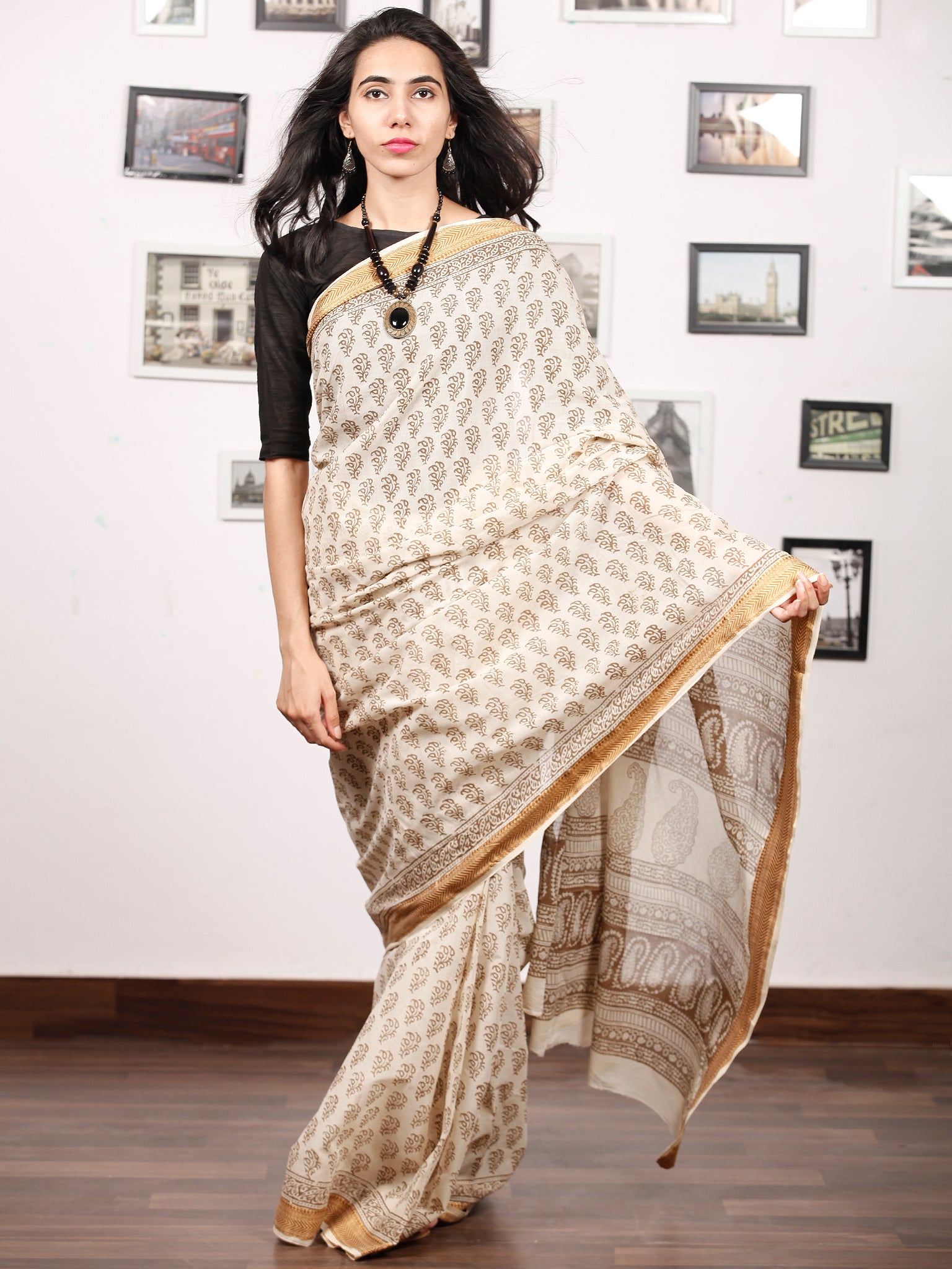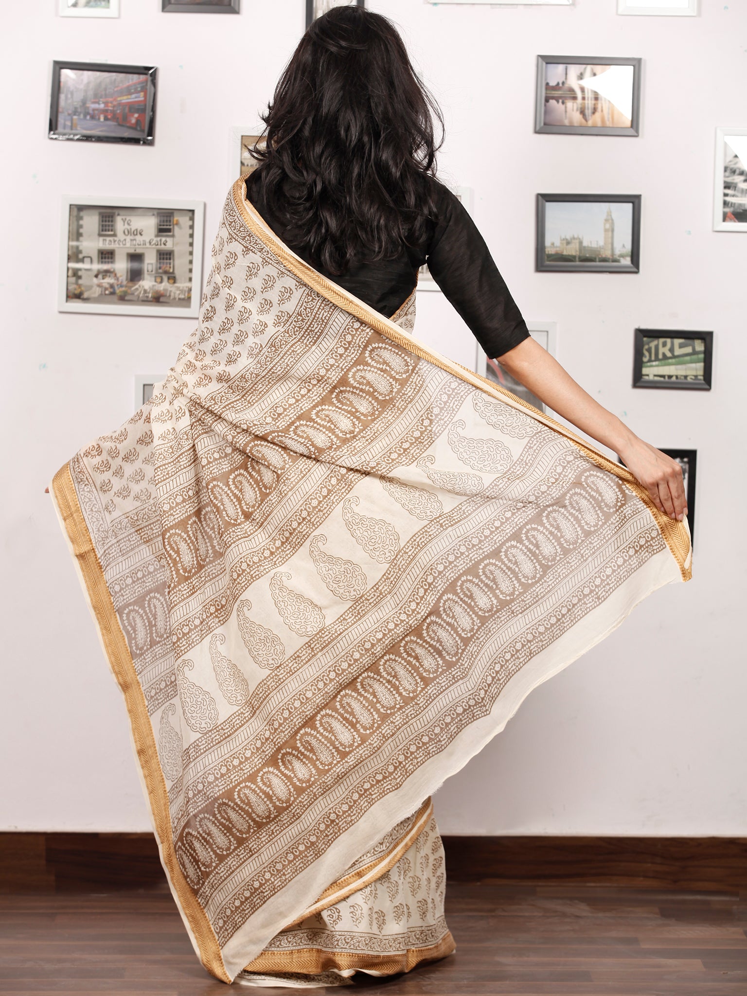 Beige Brown Bagh Printed Maheshwari Cotton Saree - S031703338