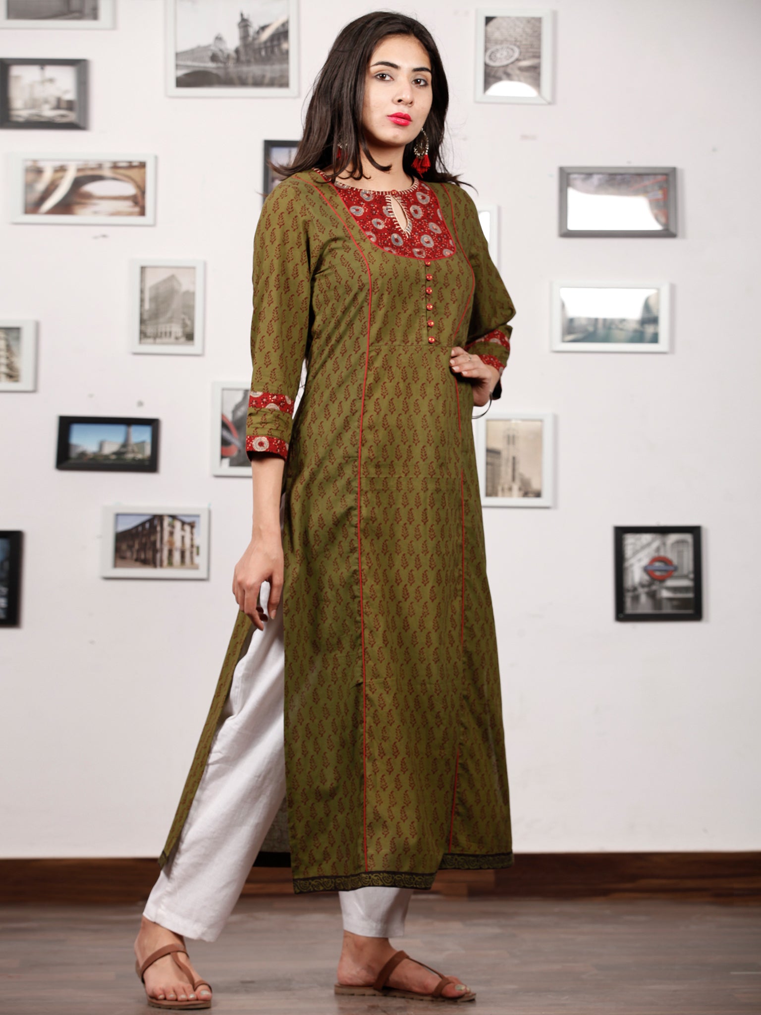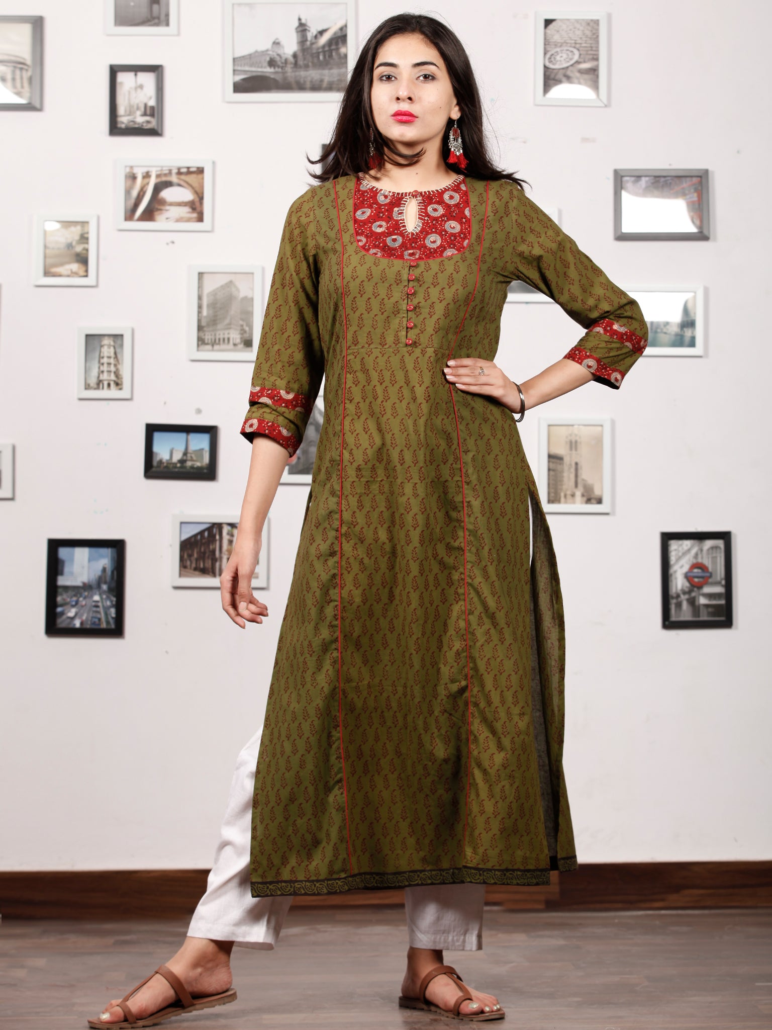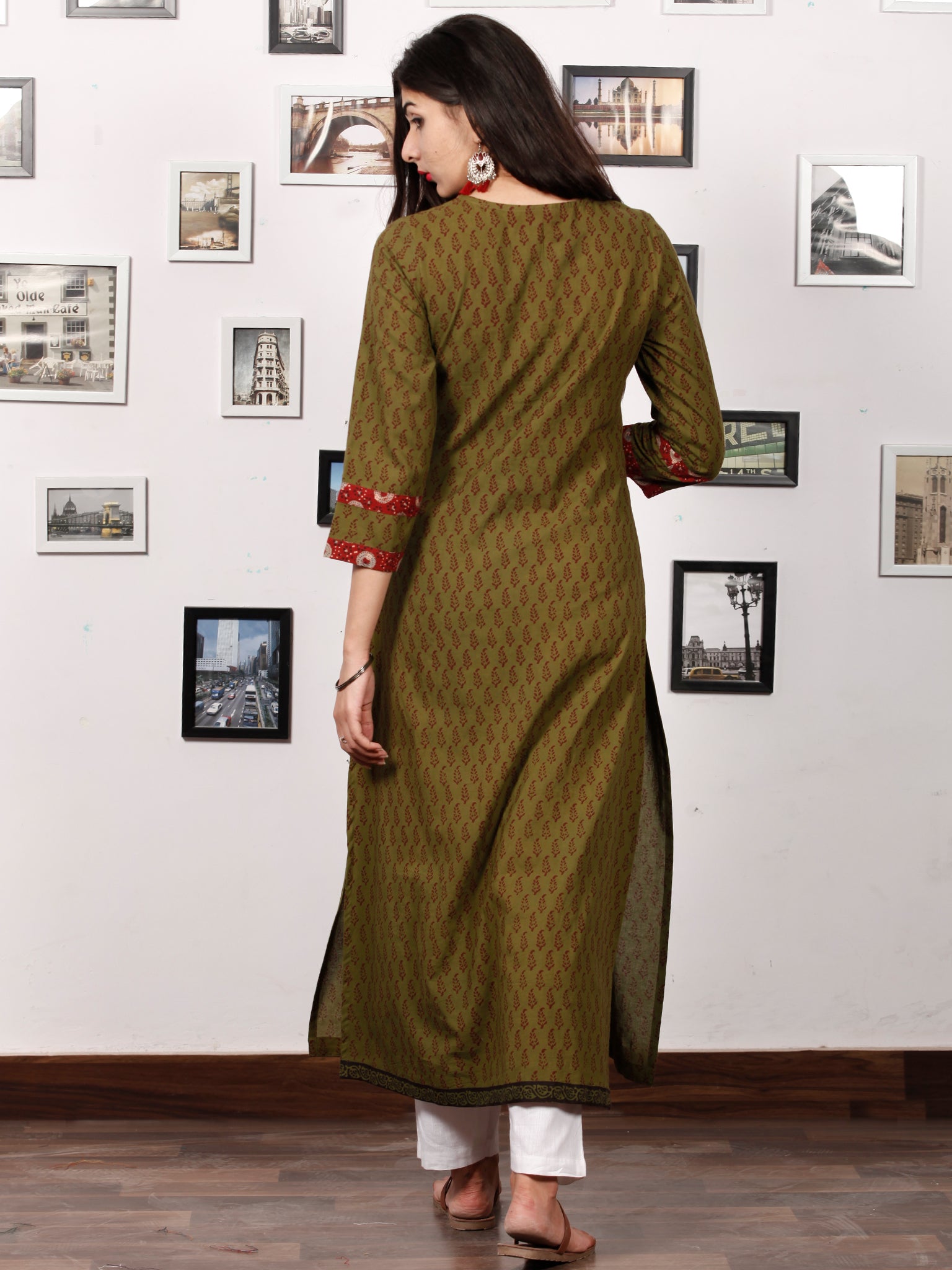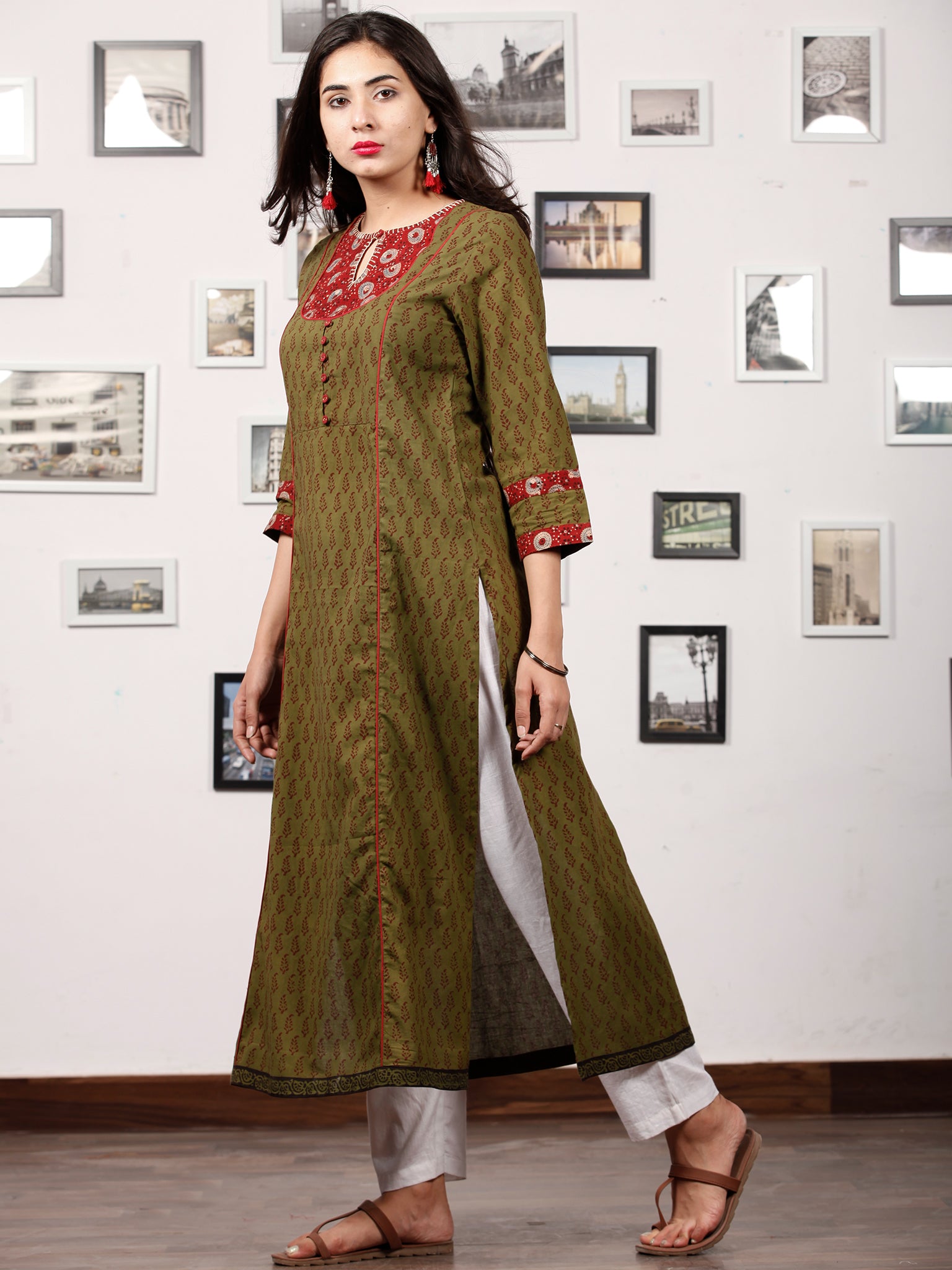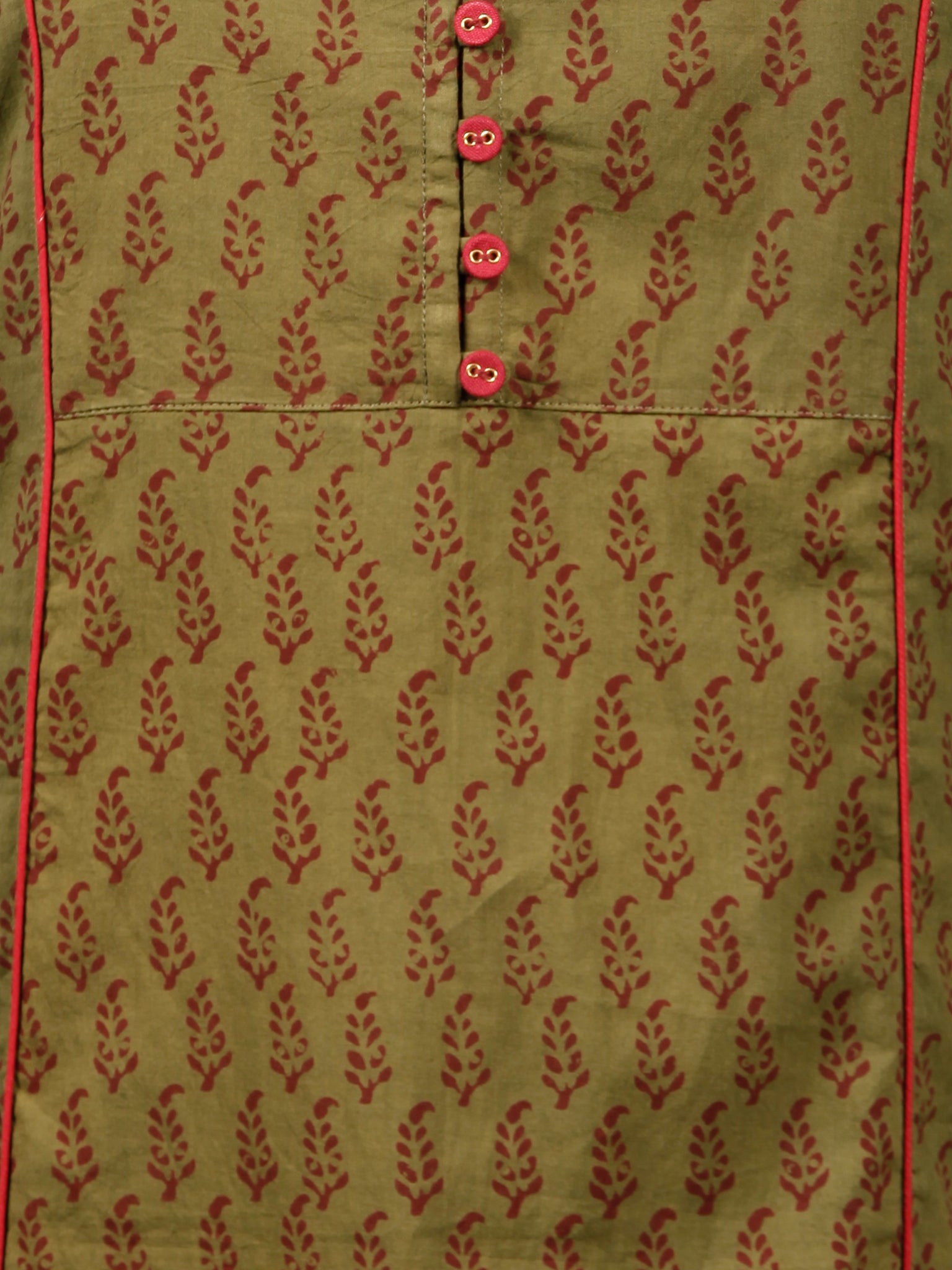 Olive Green Maroon Bagh Printed Kurta in Natural Colors - K126F1699