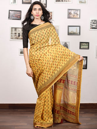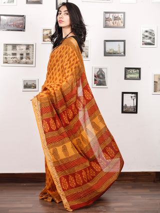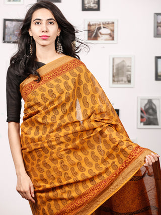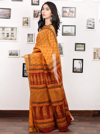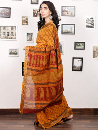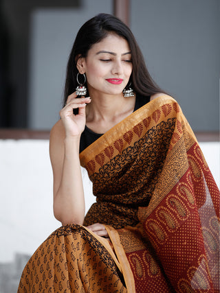 Rust Yelllow Maroon Black Bagh Printed Maheshwari Cotton Saree - S031703333