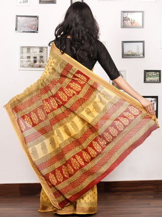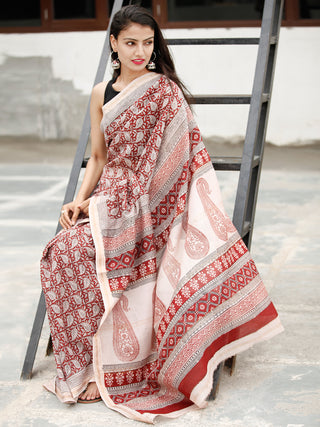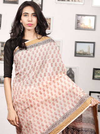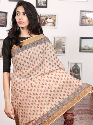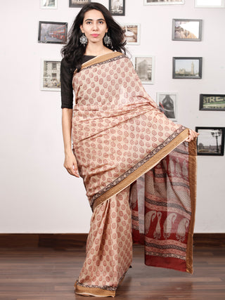 Beige Maroon Black Bagh Hand Block Printed Maheswari Silk Saree - S031703822