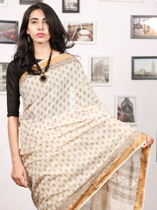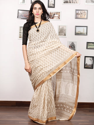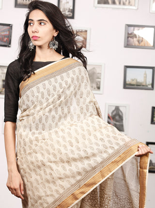 Beige Maroon Black Bagh Hand Block Printed Maheswari Silk Saree With Resham Border - S031703827
