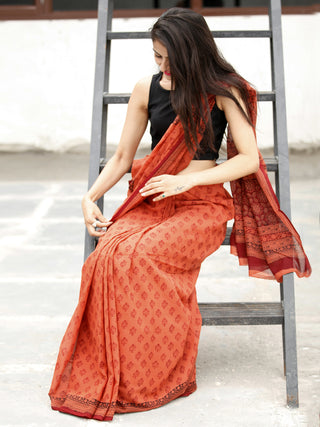 Rust Orange Maroon Black Bagh Printed Maheshwari Cotton Saree - S031703314