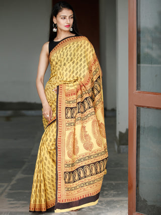 Black Beige Maroon Bagh Hand Block Printed Maheswari Silk Saree - S031703823