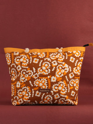 Mustard Yellow Hand Block Printed Tote Bag - B0802