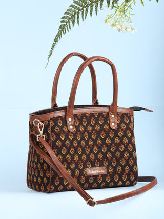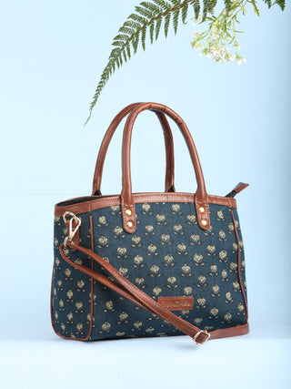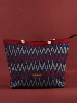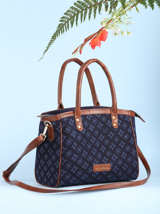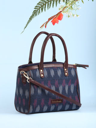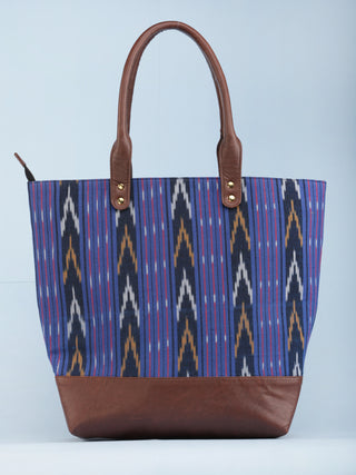 SkyBlue Indigo Brown Ikat & Vegan Leather Tote Bag - B1007