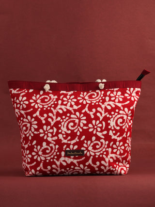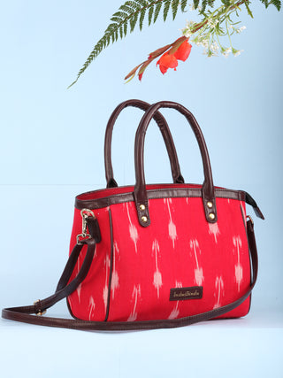 Red Ikat & Vegan Leather Bucket Style Hand Bag - B1505