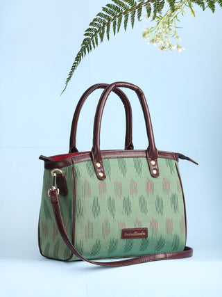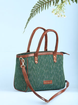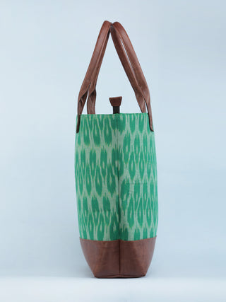 Green OffWhite Ikat & Vegan Leather Tote Bag - B1008