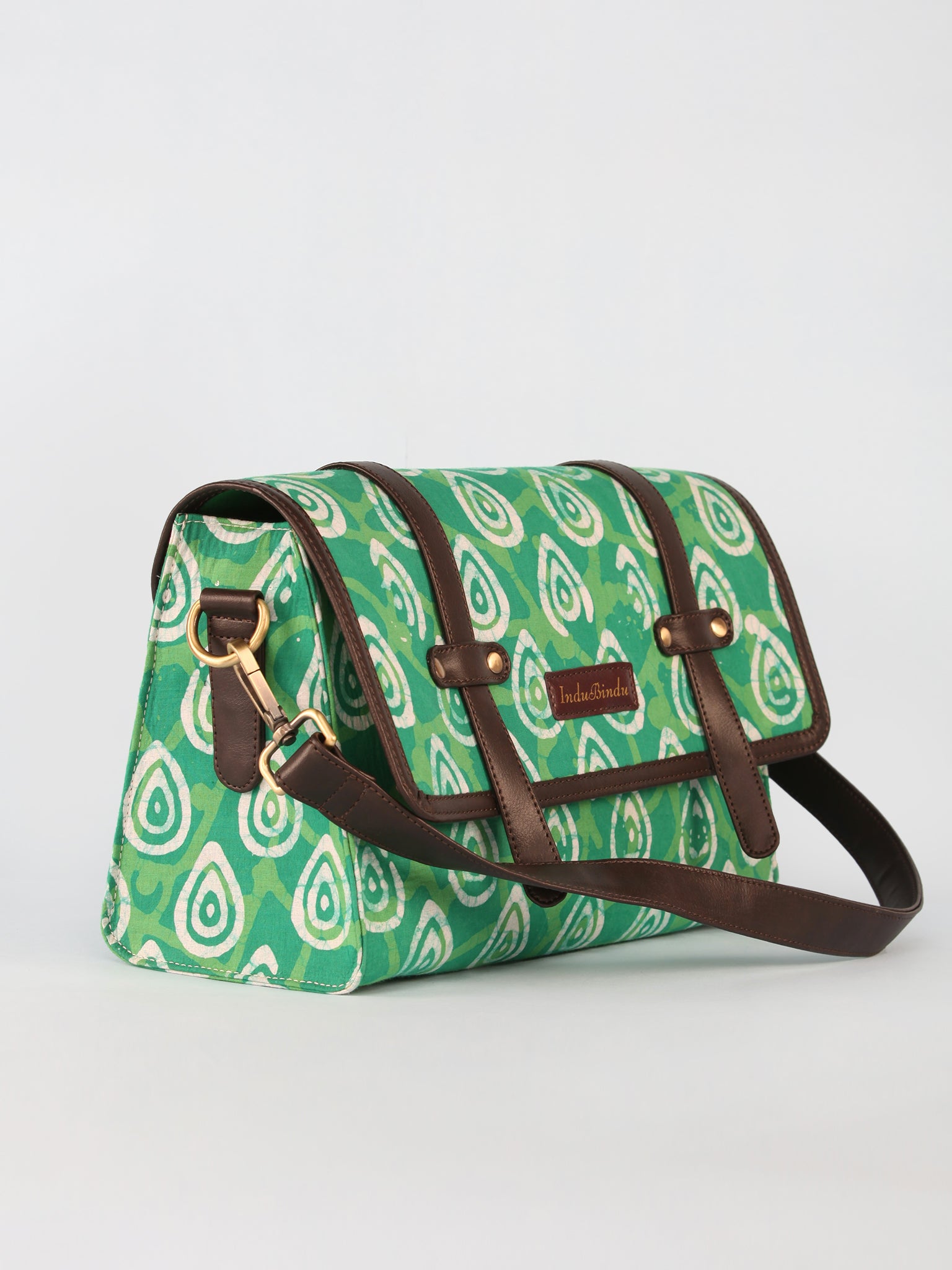 MATERIAL : Hand Block Printed Fabric, Vegan Leather , Poly Cotton Lining , other accessories.