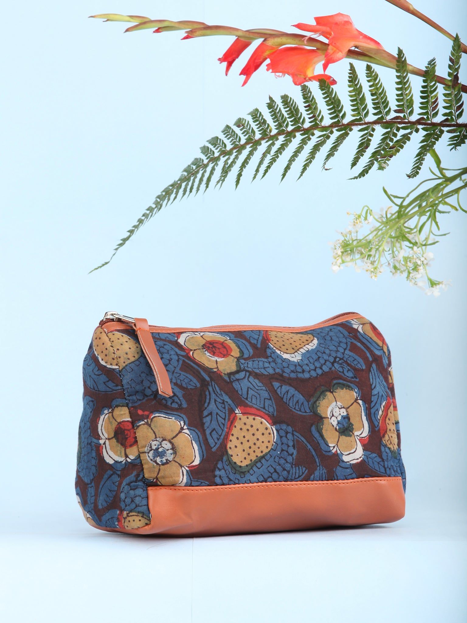 MATERIAL : Hand Block Printed Fabric, Poly Cotton Lining , Vegan leather & other accessories.