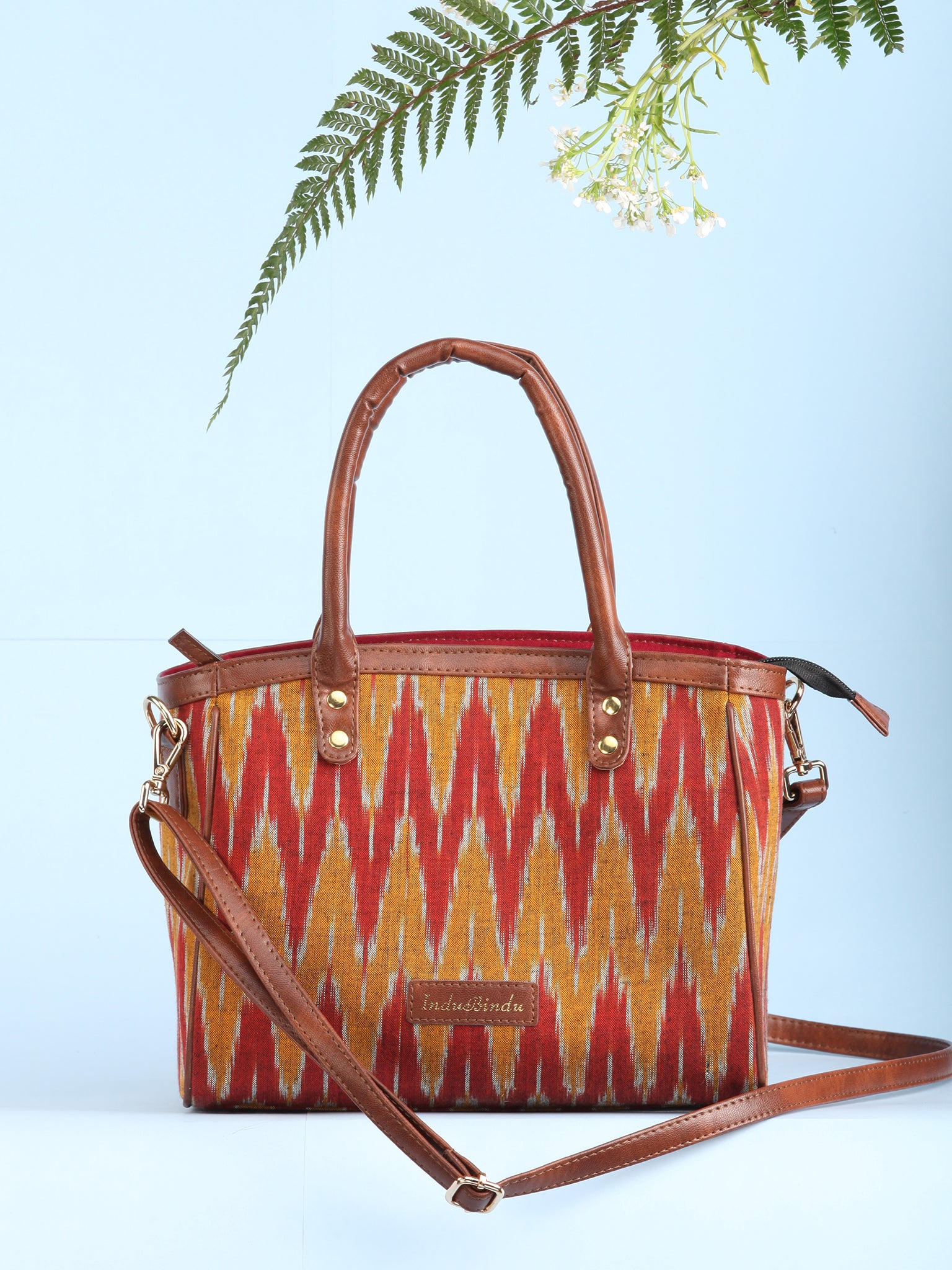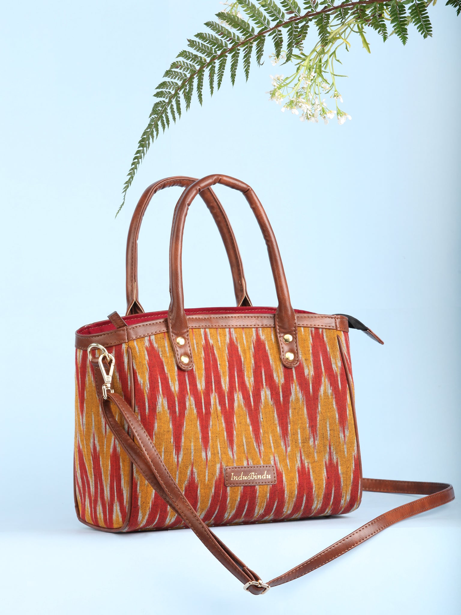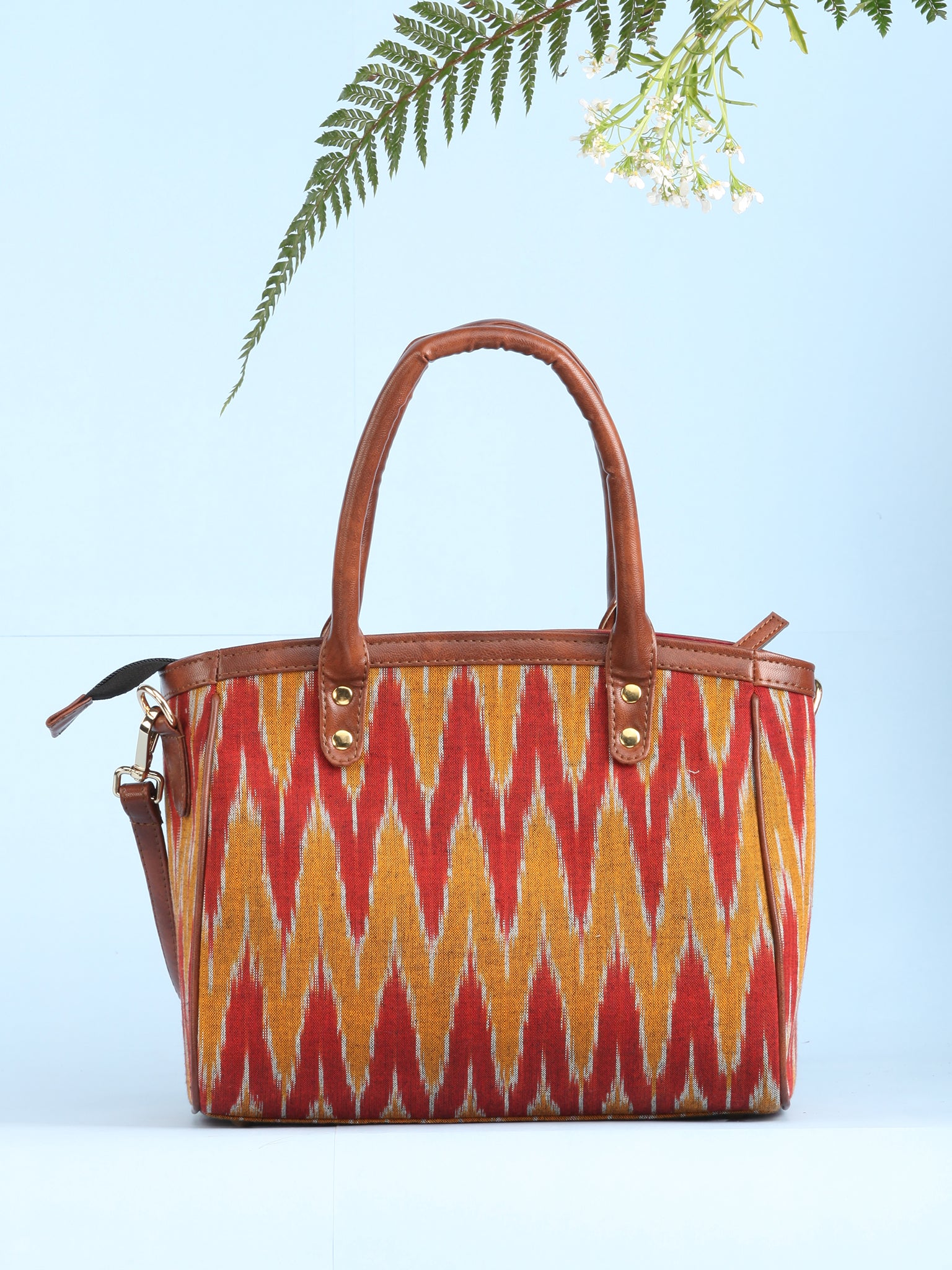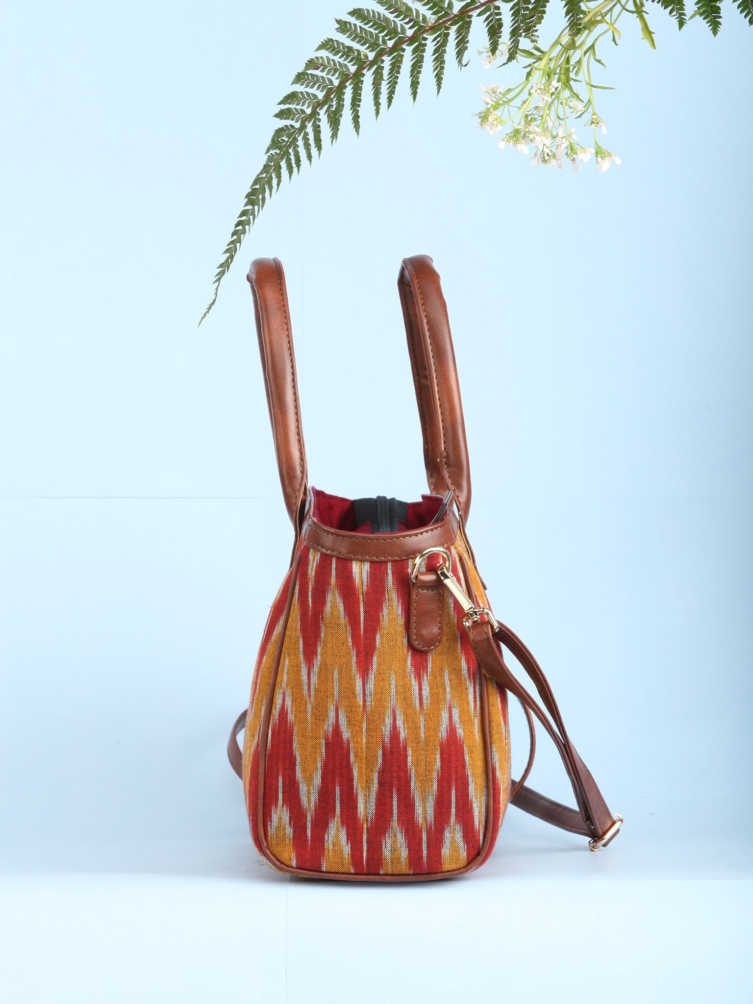 Mustard Rustic Ikat & Vegan Leather Bucket Style Hand Bag - B1507