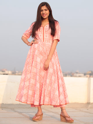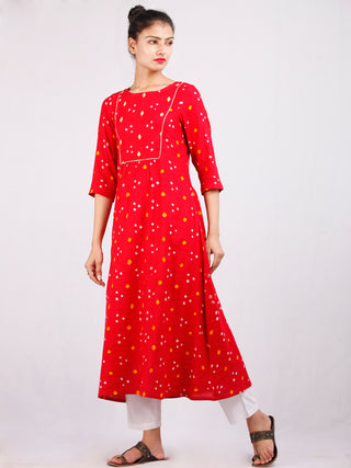 Red Mustard White Bandhani Printed Glace Cotton Kurta With Gotta Work - K182F1851