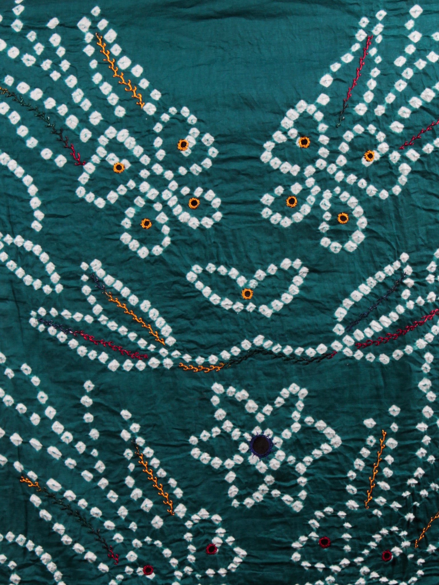 Teal Green Maroon White Hand Tie & Dye Bandhej Suit Salwar Dupatta (Set of 3) With Hand Embroidery & Mirror Work - S16281255