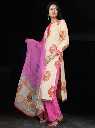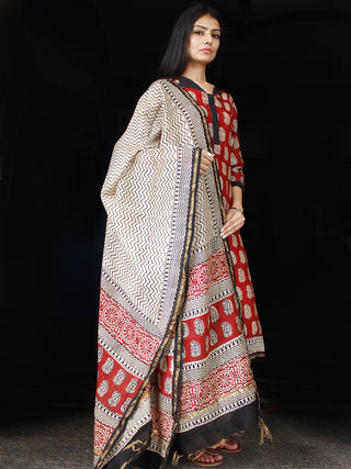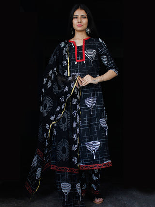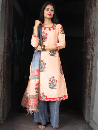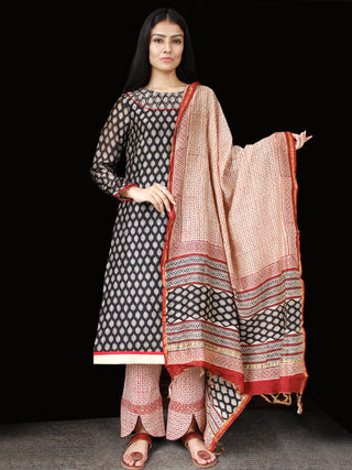 Aabida - Hand Block Printed Anarkali Kurta Palazzo Set With Dupatta - SS01F1806