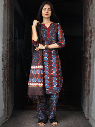 Ajrakh Guldasta - Angrakha Kurta Set With Dupatta - SS01F1869