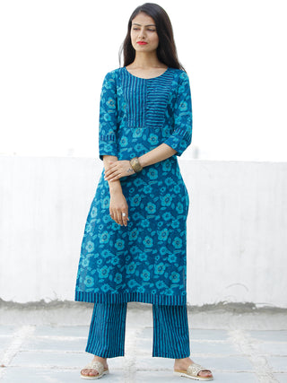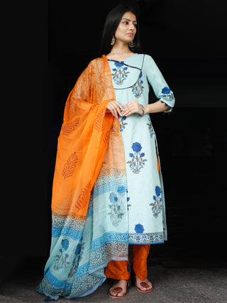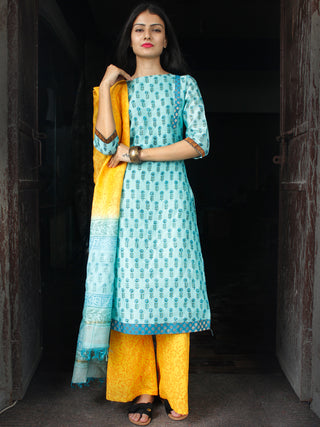Blue Sky Blue Cotton Block Printed Kurta & Pants - Set of 2 - SS01F1940
