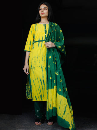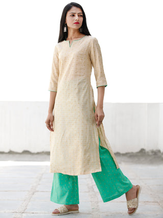 Beige Green Golden Chanderi Silk Kurta & Pants Sets - Set of 2 - SS01F071