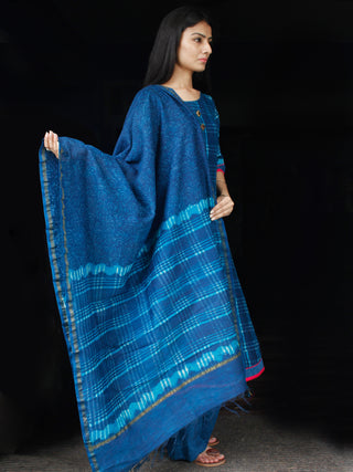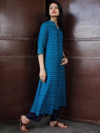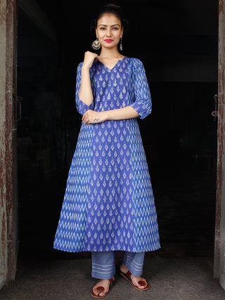 Blue Silk Cotton Ikat Embroidered Kurta & Pants (Set of 2) - SS01F1748