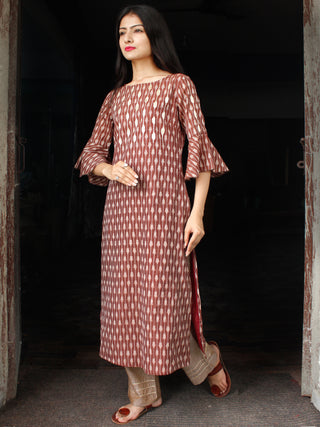 Brown Rust Silk Cotton Ikat Embroidered Kurta & Pants (Set of 2) - SS01F1751