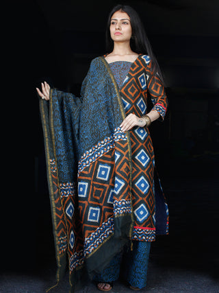Indigo Rust Ivory Chanderi Block Printed Suit Set - Set of 3 - SS01F027
