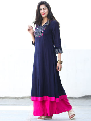 Indigo Pink Rayon Kurta And Palazzo With Embroidery Details - Set of 2 - SS01F026