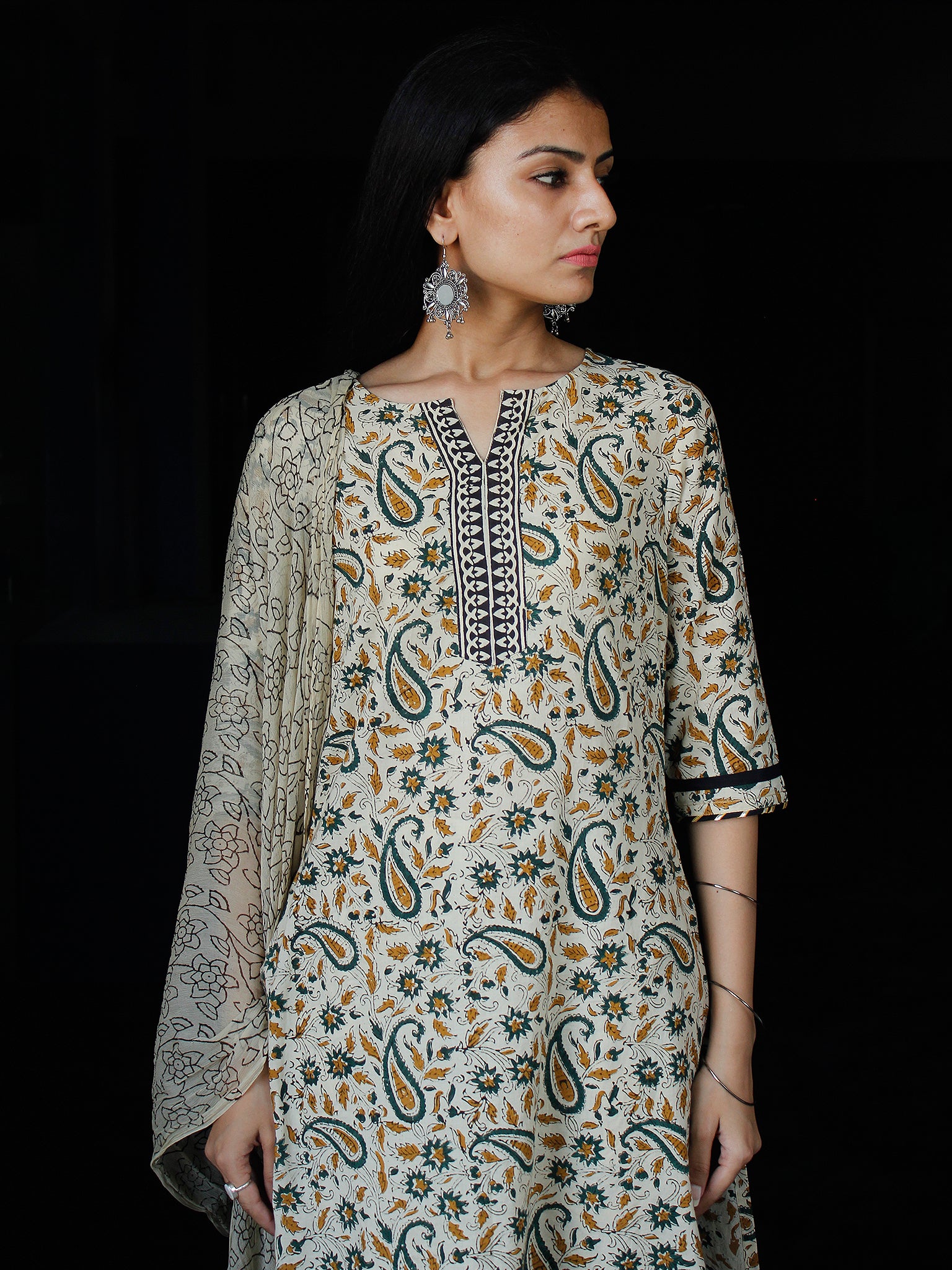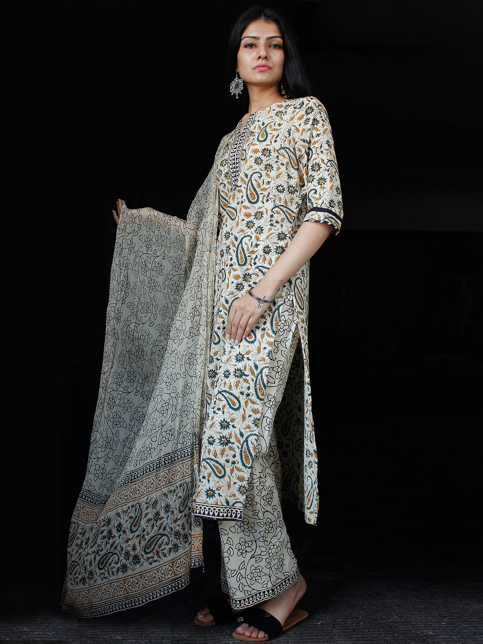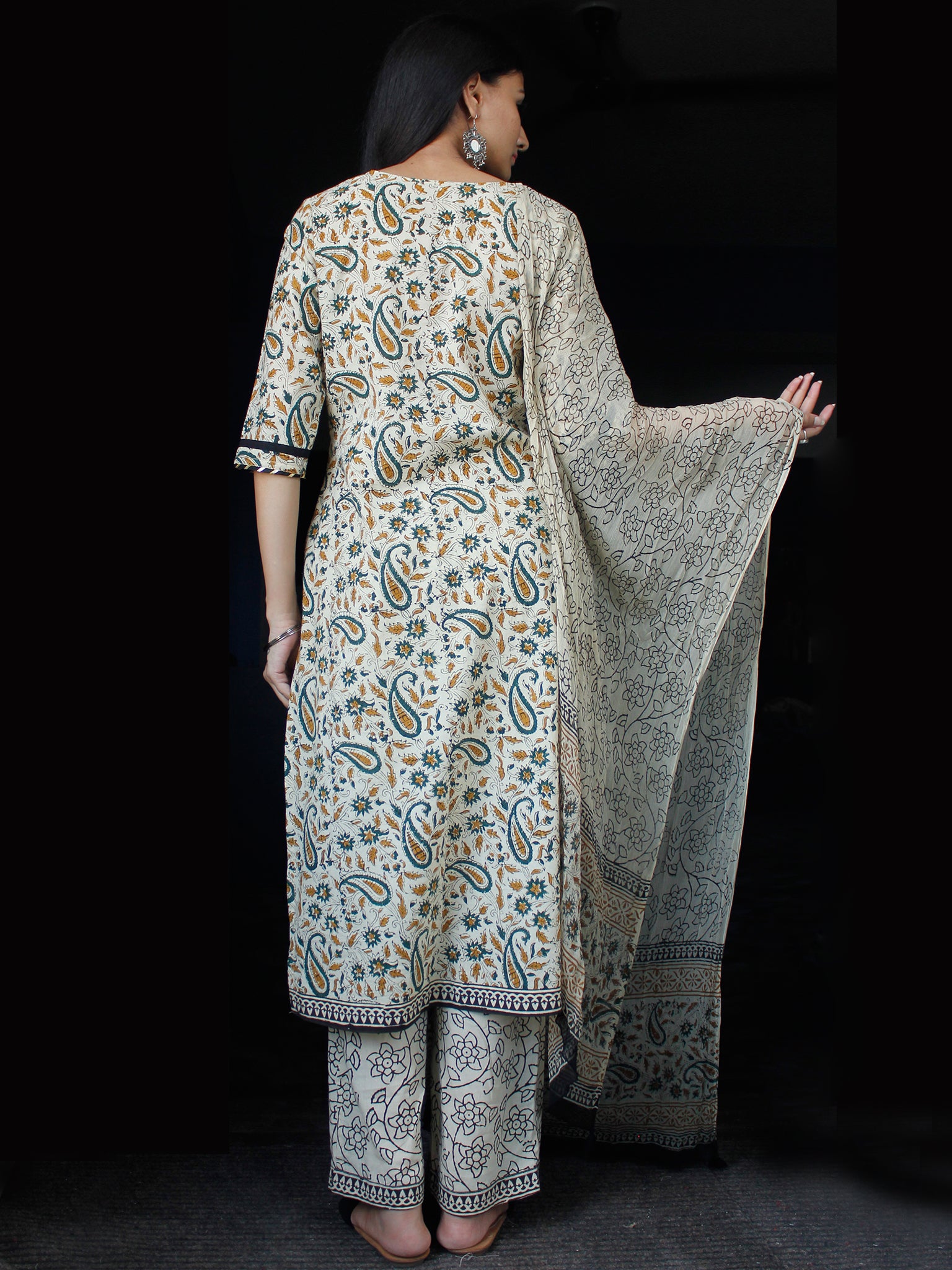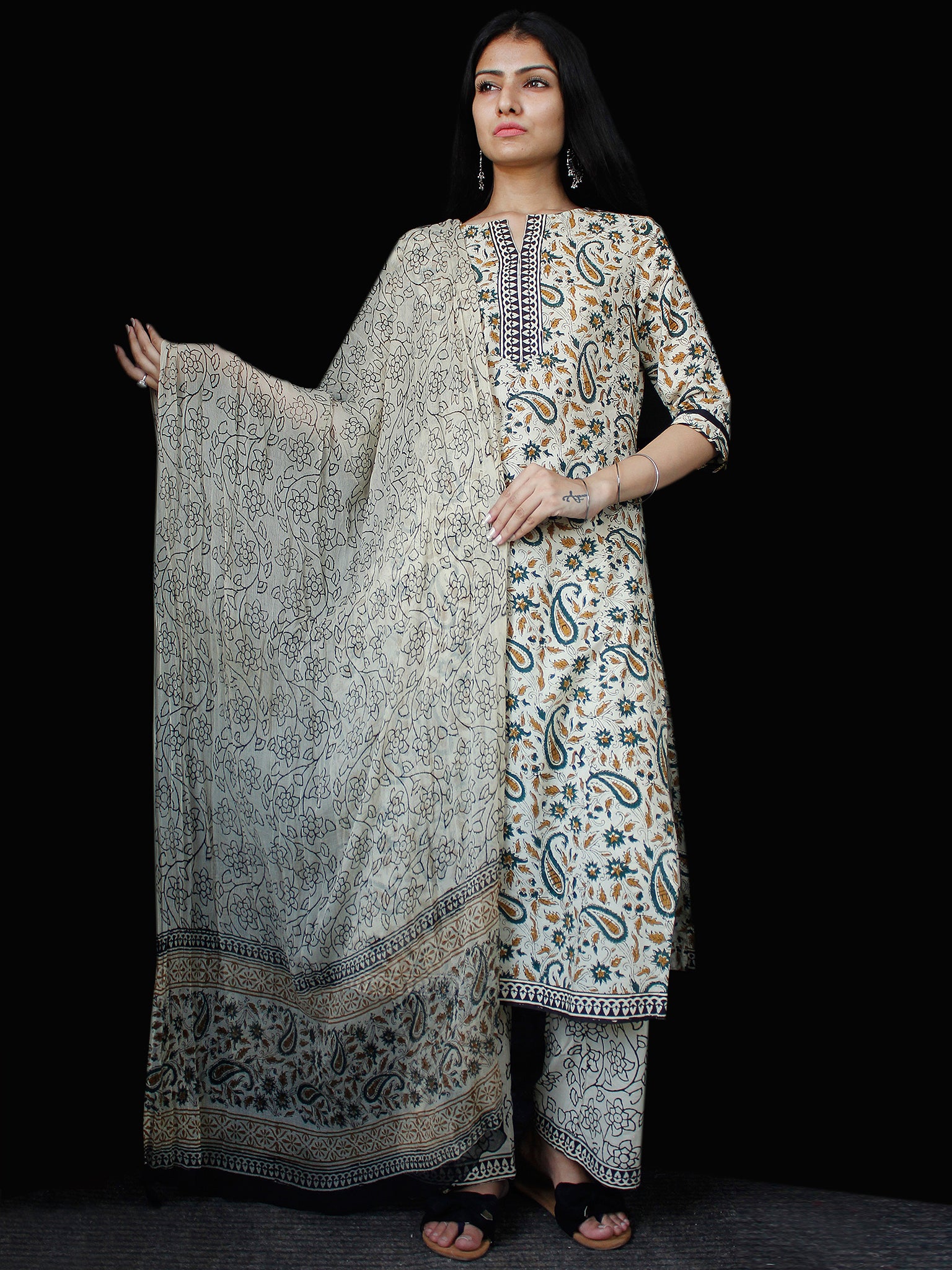 PRODUCT: Set of Kurta, Pant and Dupatta. Block printed by Artisans in Rajasthan.