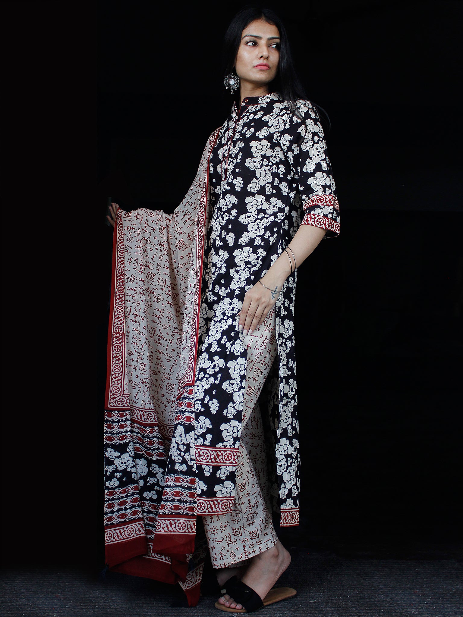 PRODUCT: Set of Kurta, Pant and Dupatta. Block printed by Artisans in Rajasthan.