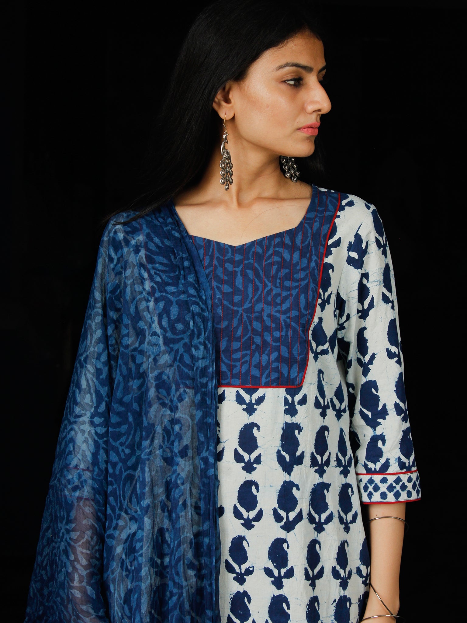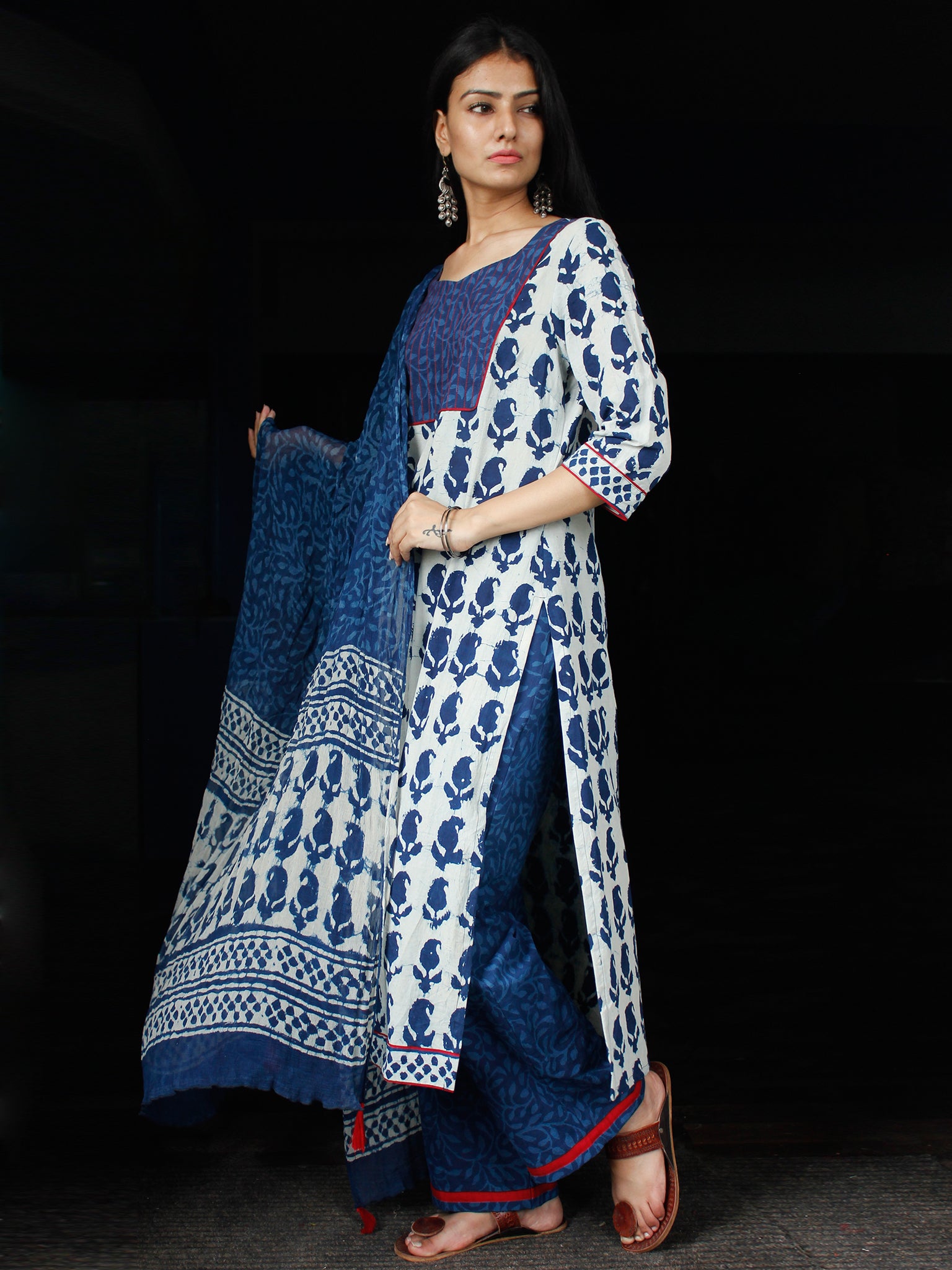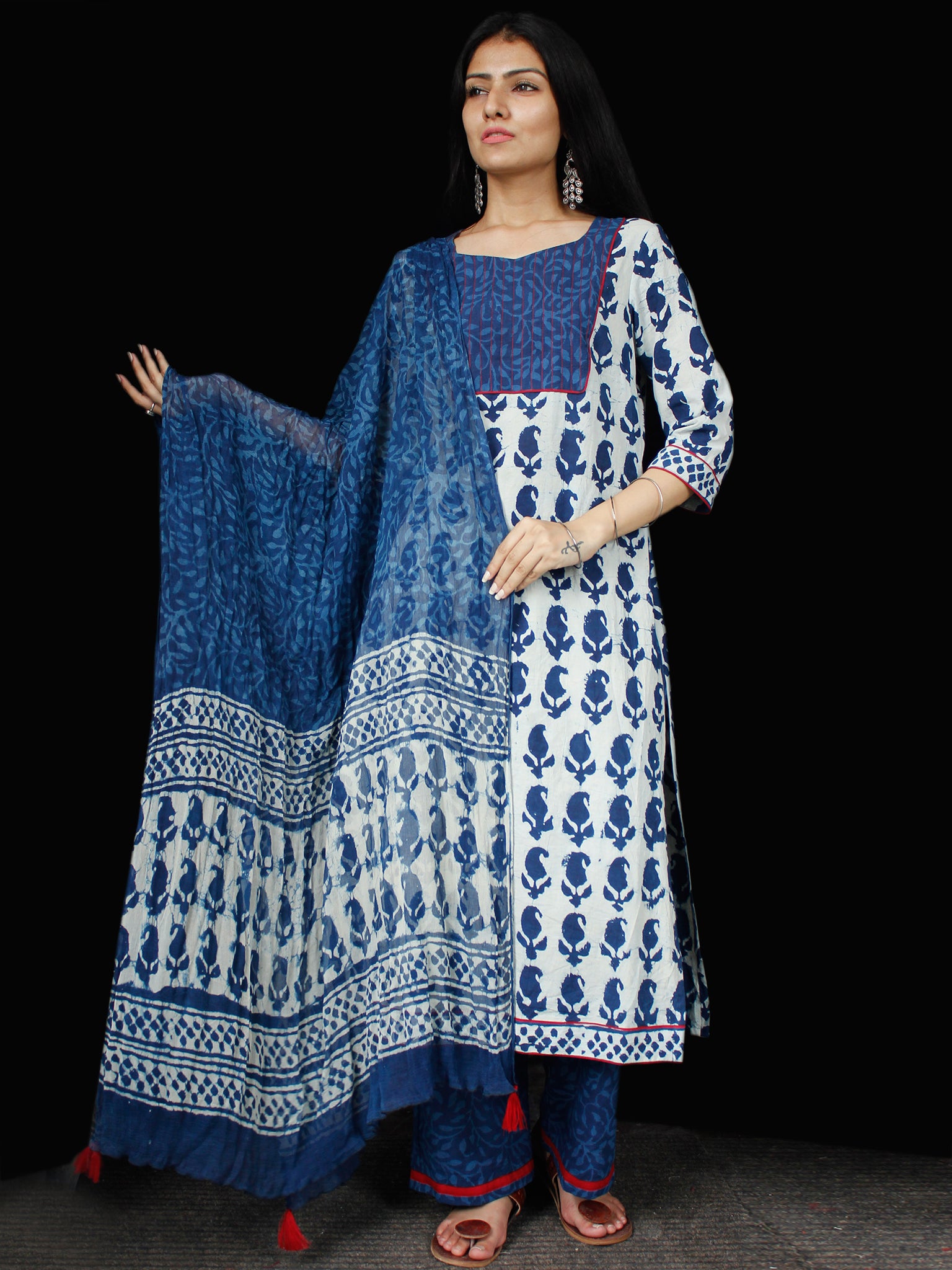 PRODUCT: Set of Kurta, Pant and Dupatta. Block printed by Artisans in Rajasthan.