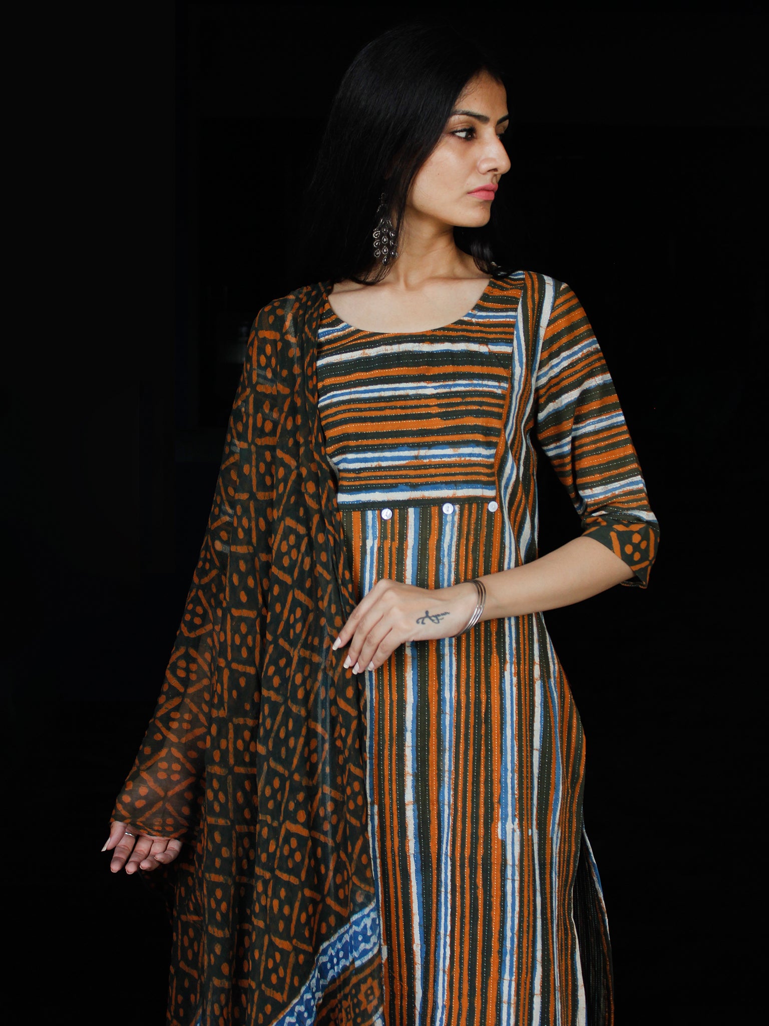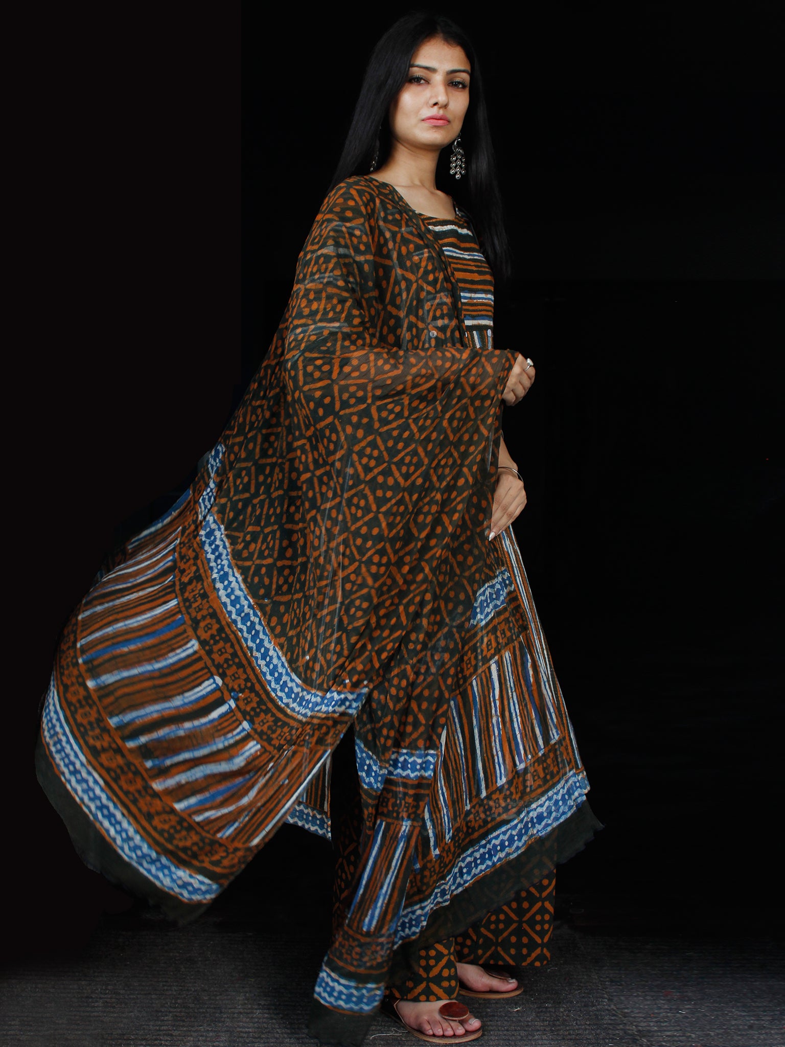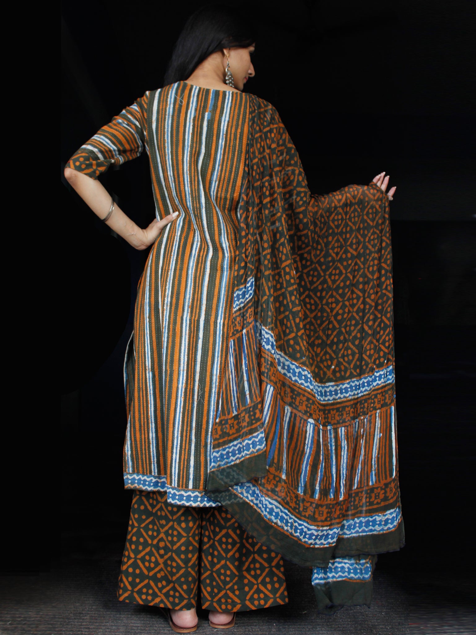 PRODUCT: Set of Kurta, Pant and Dupatta. Block printed by Artisans in Rajasthan.