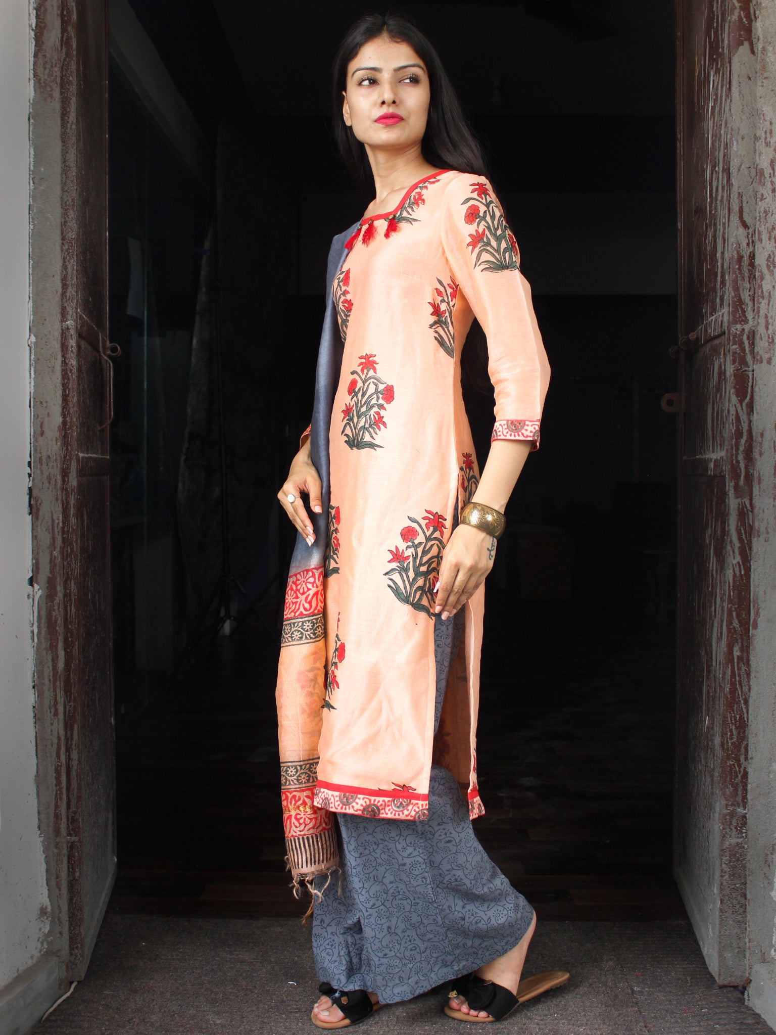PRODUCT: Set of Kurta, Pant and Dupatta. Block printed by Artisans in Rajasthan.