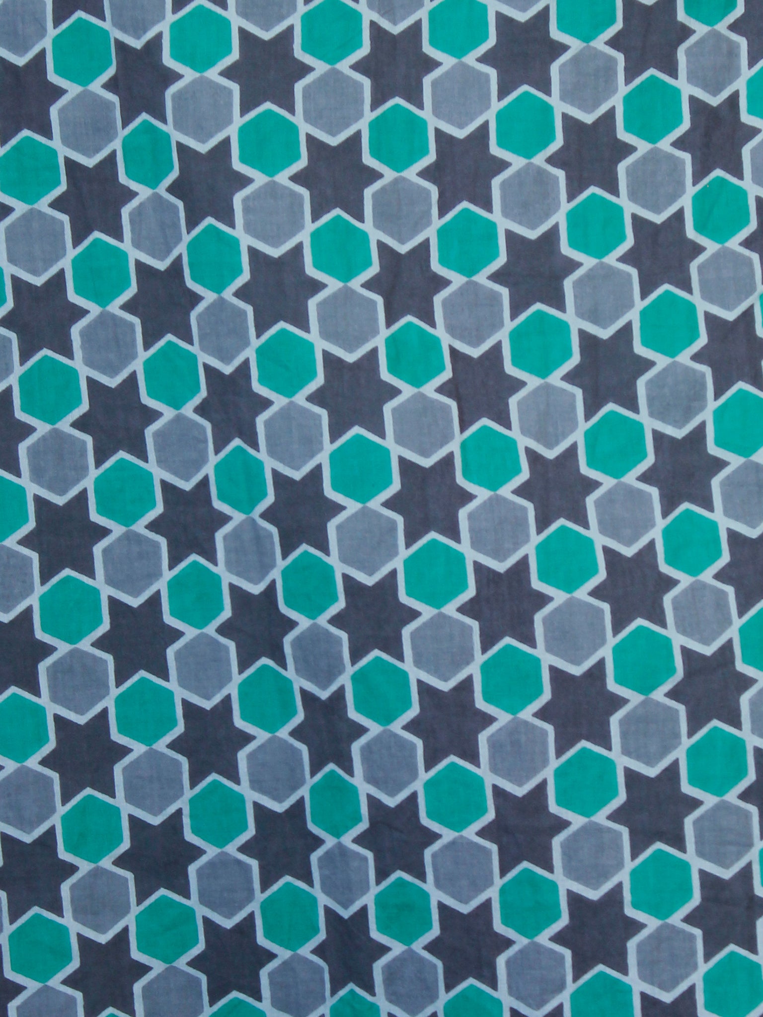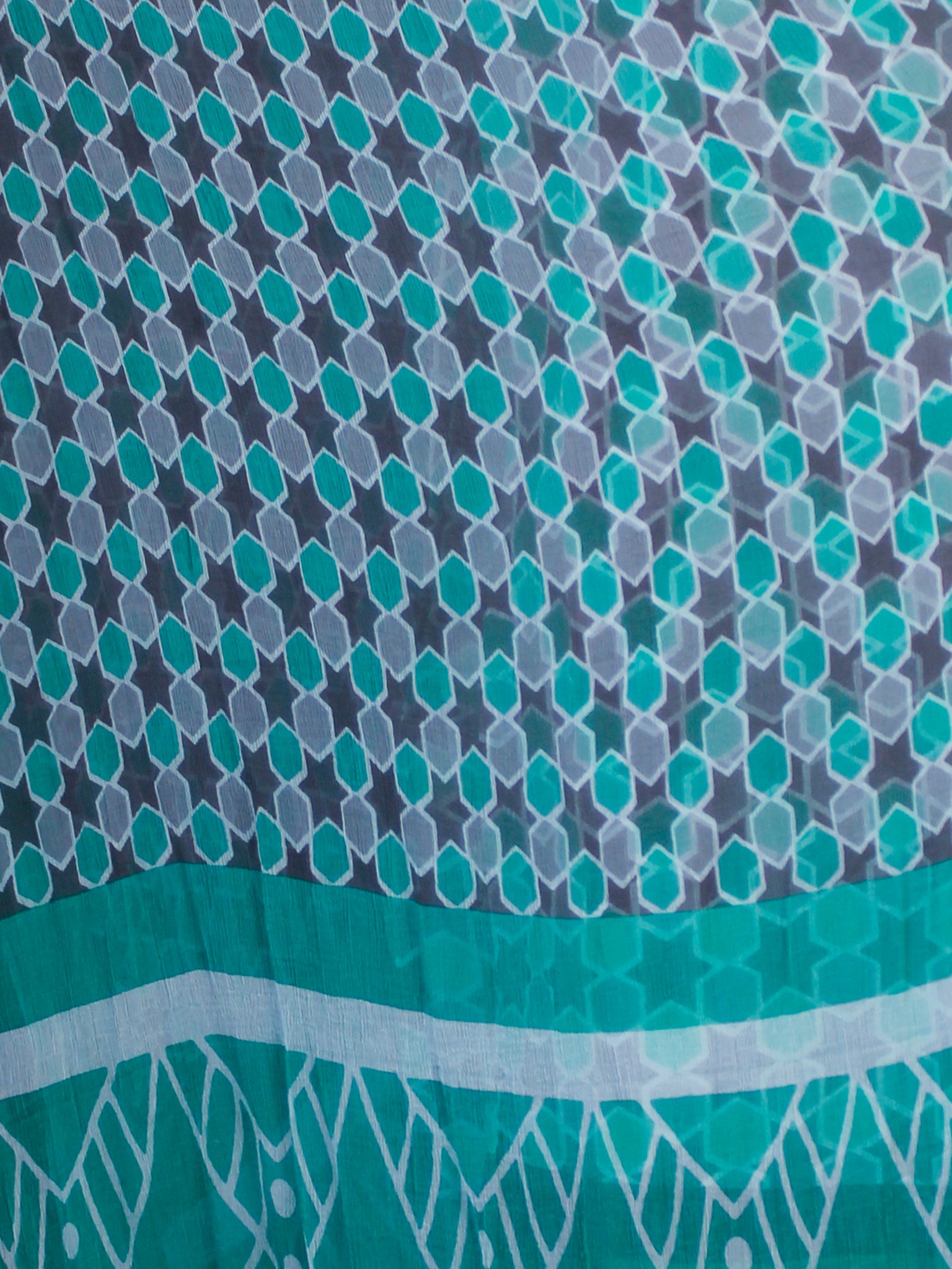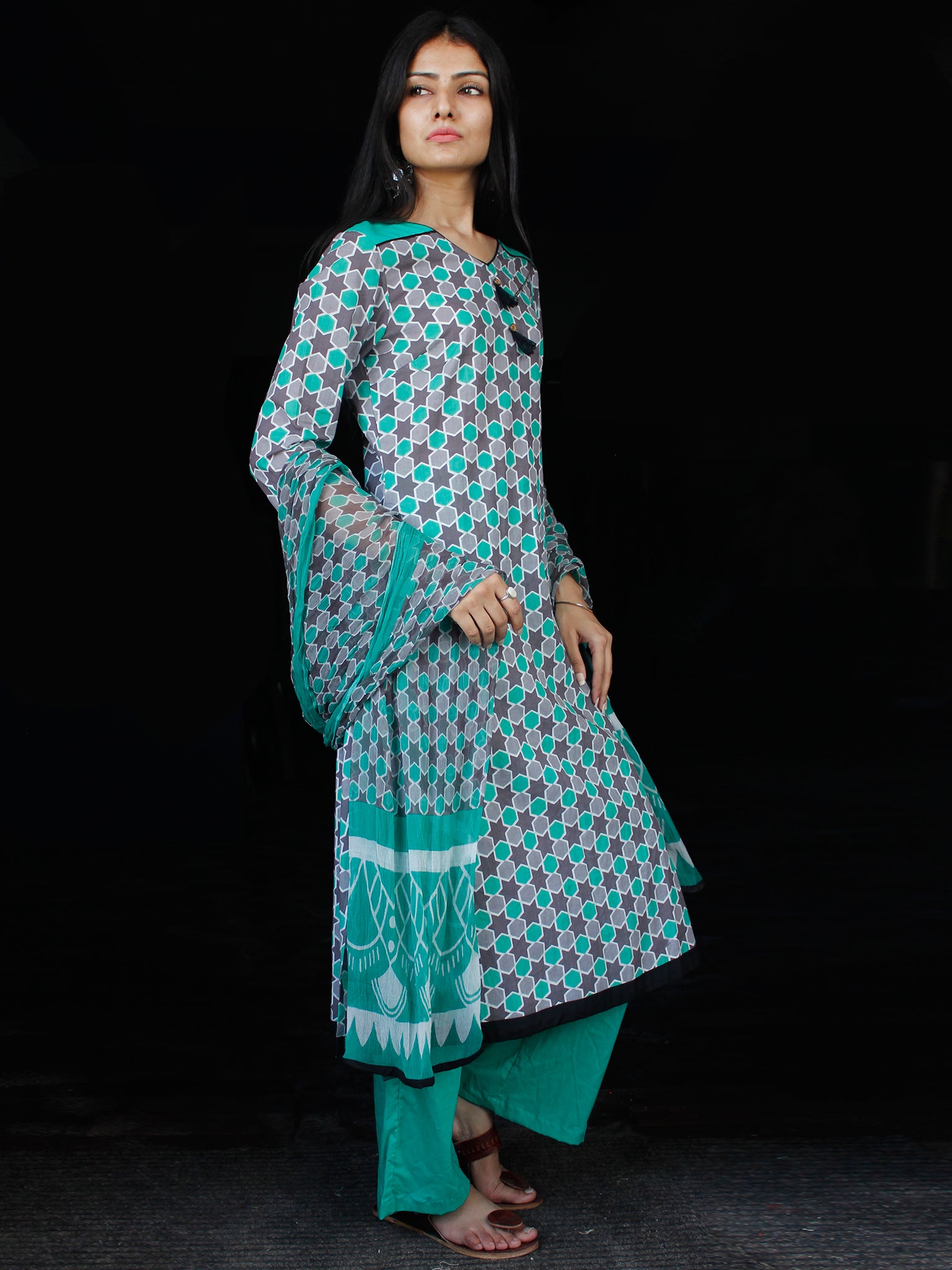 Sea Green Grey White Cotton Block Printed Suit - Set of 3 - SS01F020