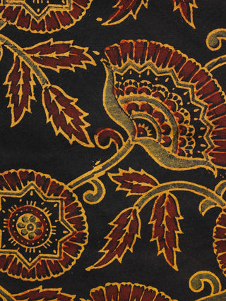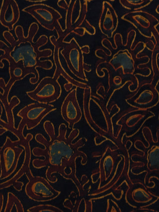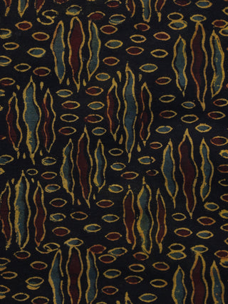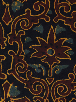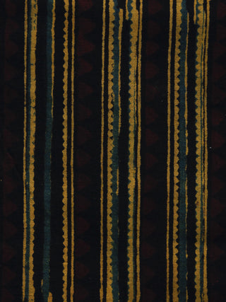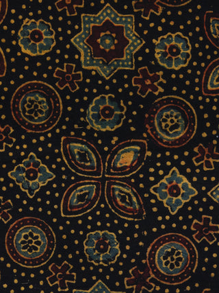 Black Brown Yellow Green Ajrakh Hand Block Printed Cotton Blouse Fabric - BPA045