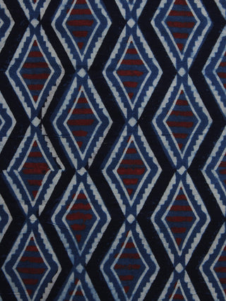 Indigo Black Rust Ivory Ajrakh Hand Block Printed Cotton Blouse Fabric - BPA058