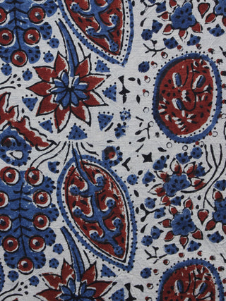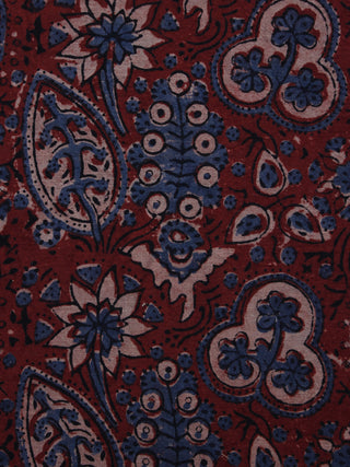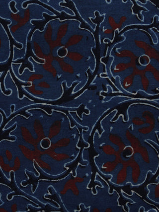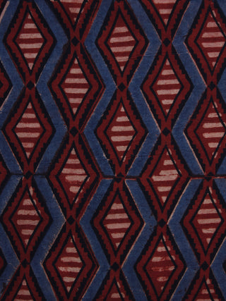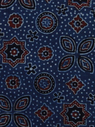 Indigo Blue Maroon White Ajrakh Hand Block Printed Cotton Blouse Fabric - BPA096