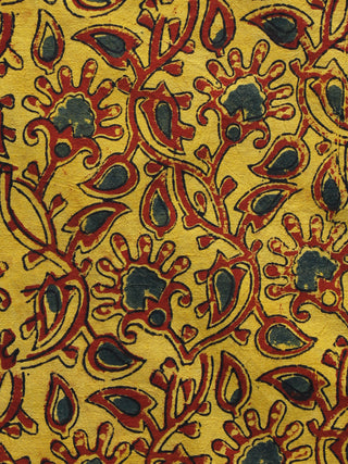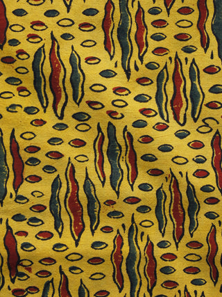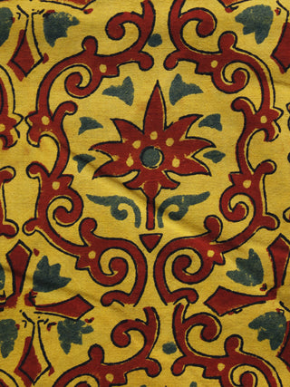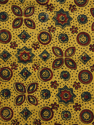Yellow Green Black Brown Ajrakh Hand Block Printed Cotton Blouse Fabric - BPA030