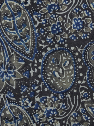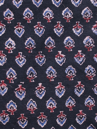 Black Rust Blue Ivory Ajrakh Hand Block Printed Cotton Blouse Fabric - BPA059